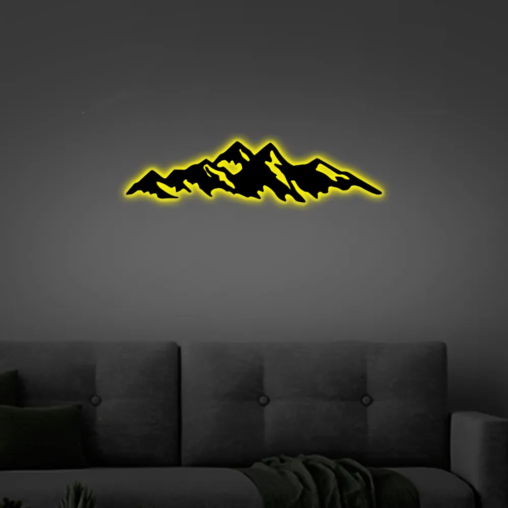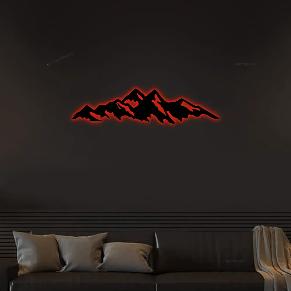 Customized Mountain Ridge Led Lights Steel Sign, Outdoor Adventures Mountain View Landscape Monogram Wall Art Sign Anniversary Gift