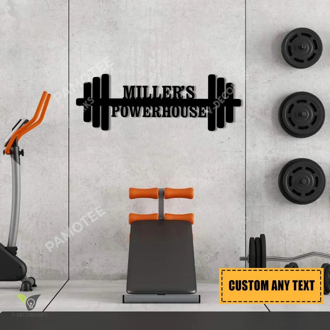 Customized Name Barbell Power House Wall Art For Fitness Center, Metal Gym Sign, Large Sizes Available