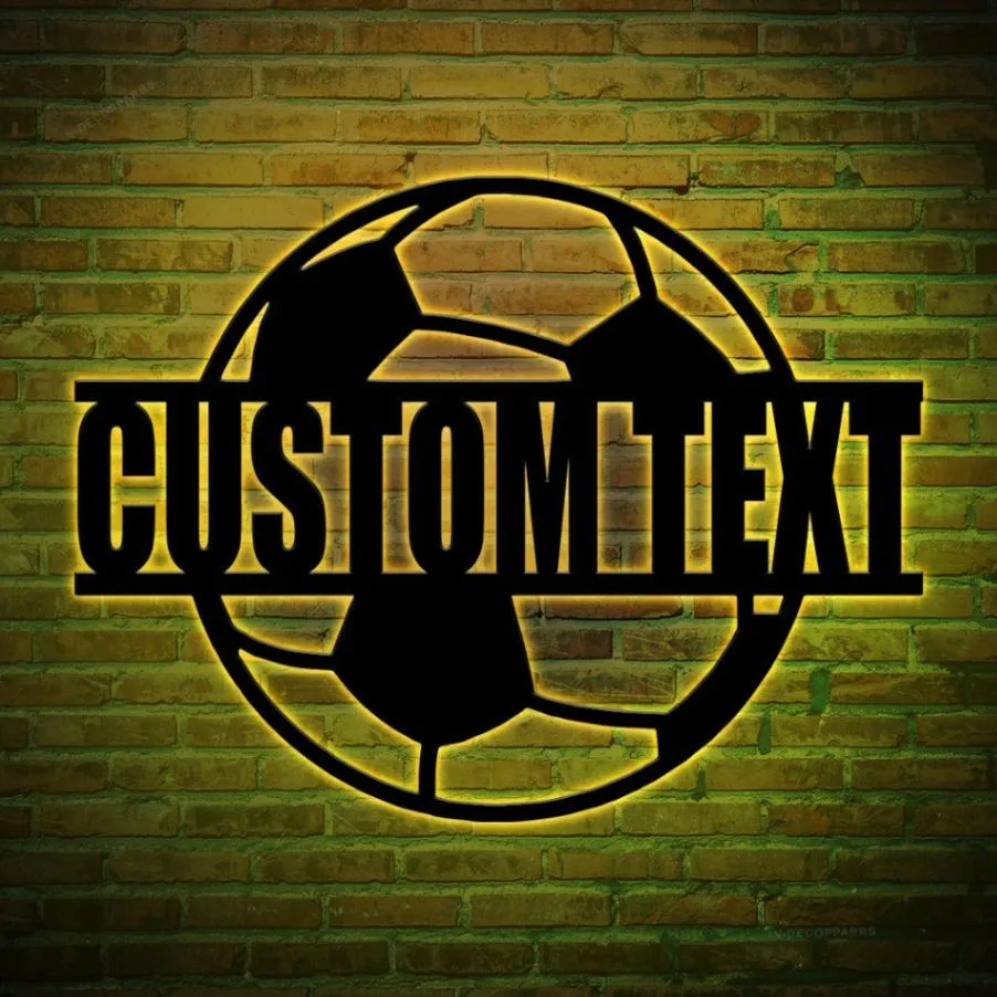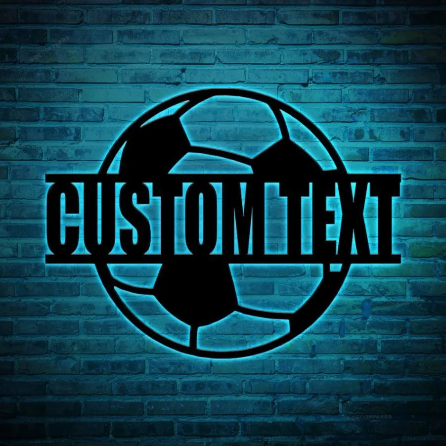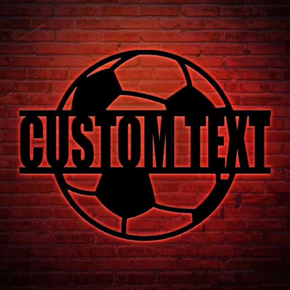 Customized Soccer Metal Wall Art Led Lights, Custom Soccer Player Metal Art, Football Metal Sign Monogram, Gift For Husband