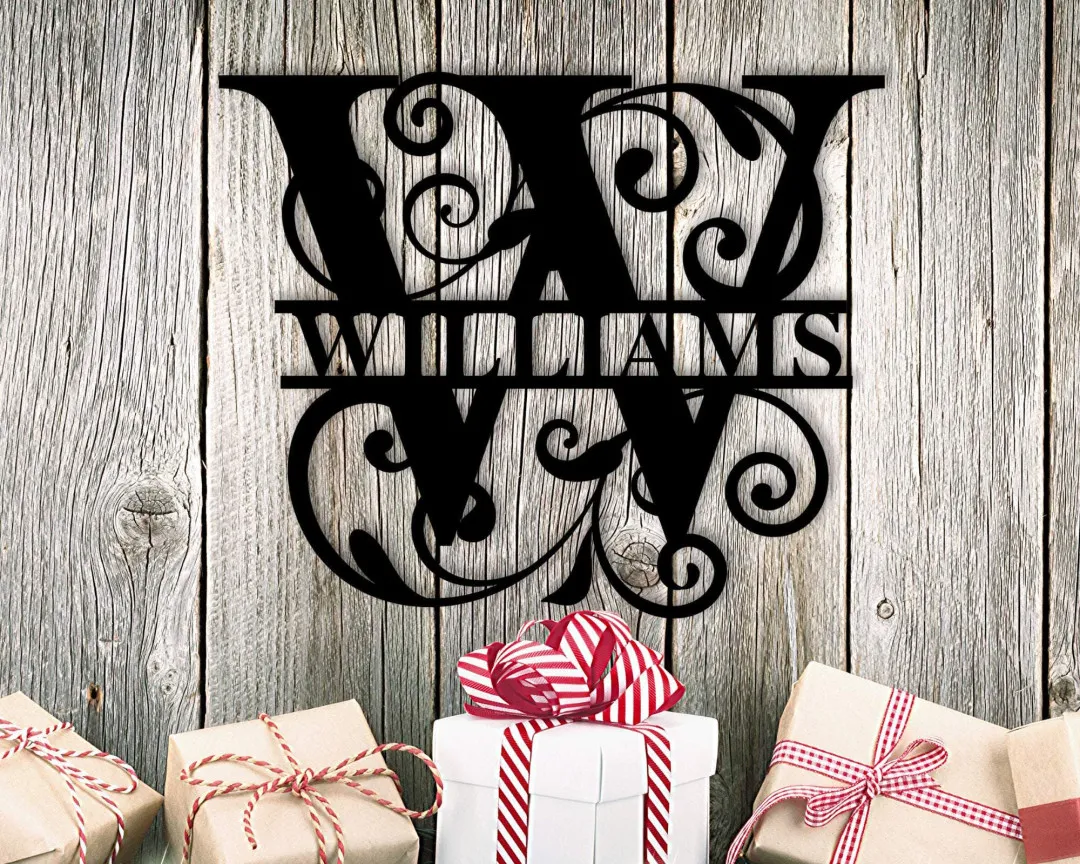 Decorative Split Monogram Metal Family Name Sign