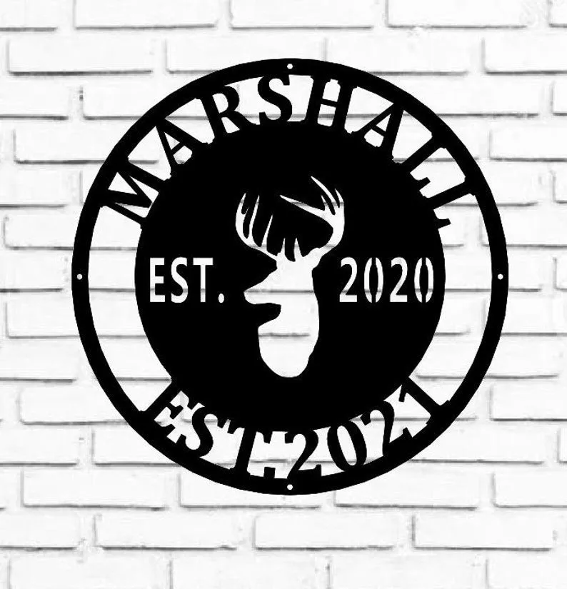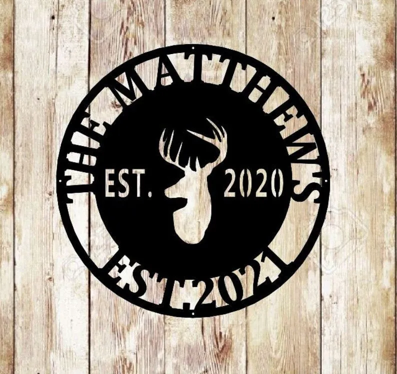Deer Sign, Deer Antler Decor, Deer Hunter Gift, Deer Camp Sign, Christmas Gift For Him, Deer Name Metal Sign, Fathers Day Gift