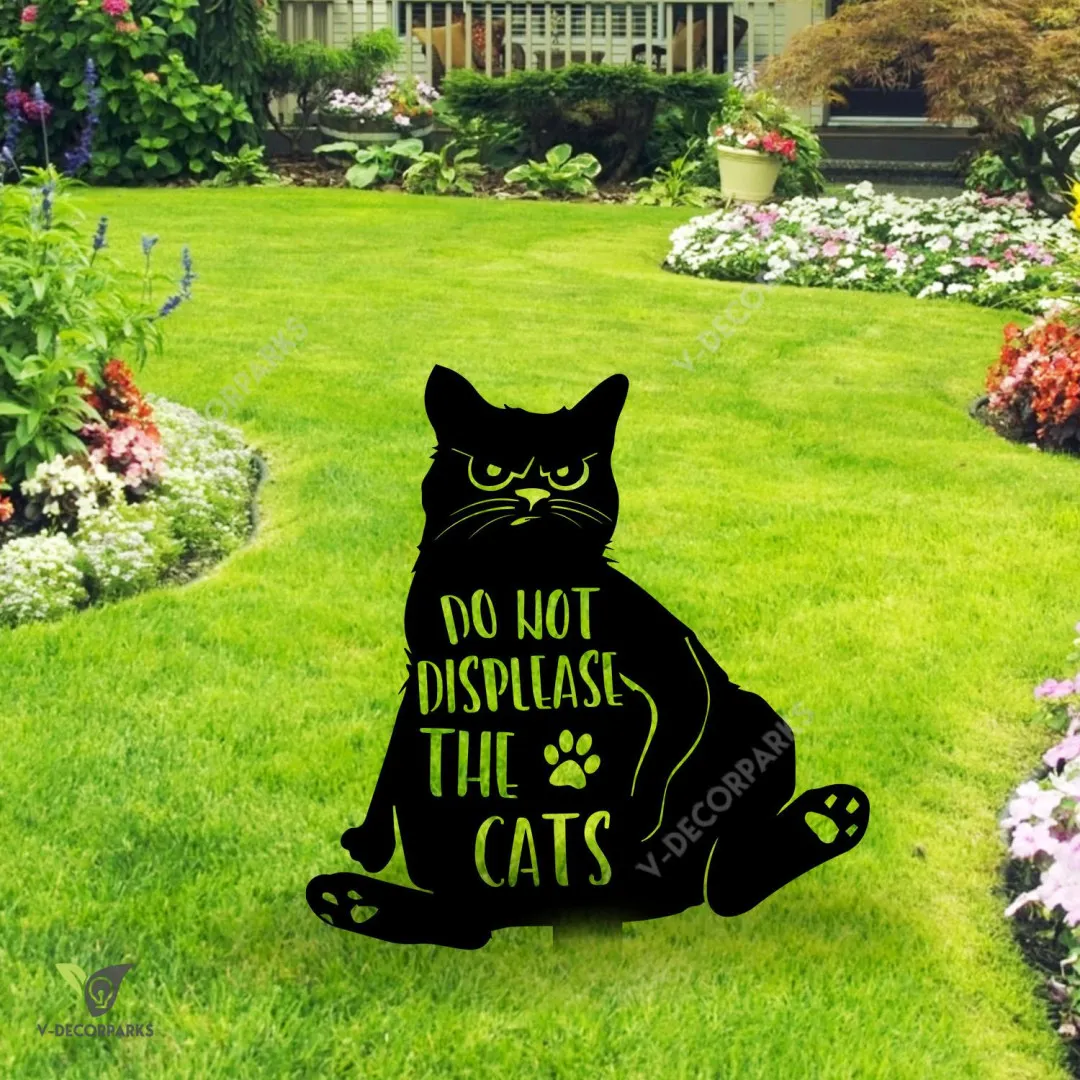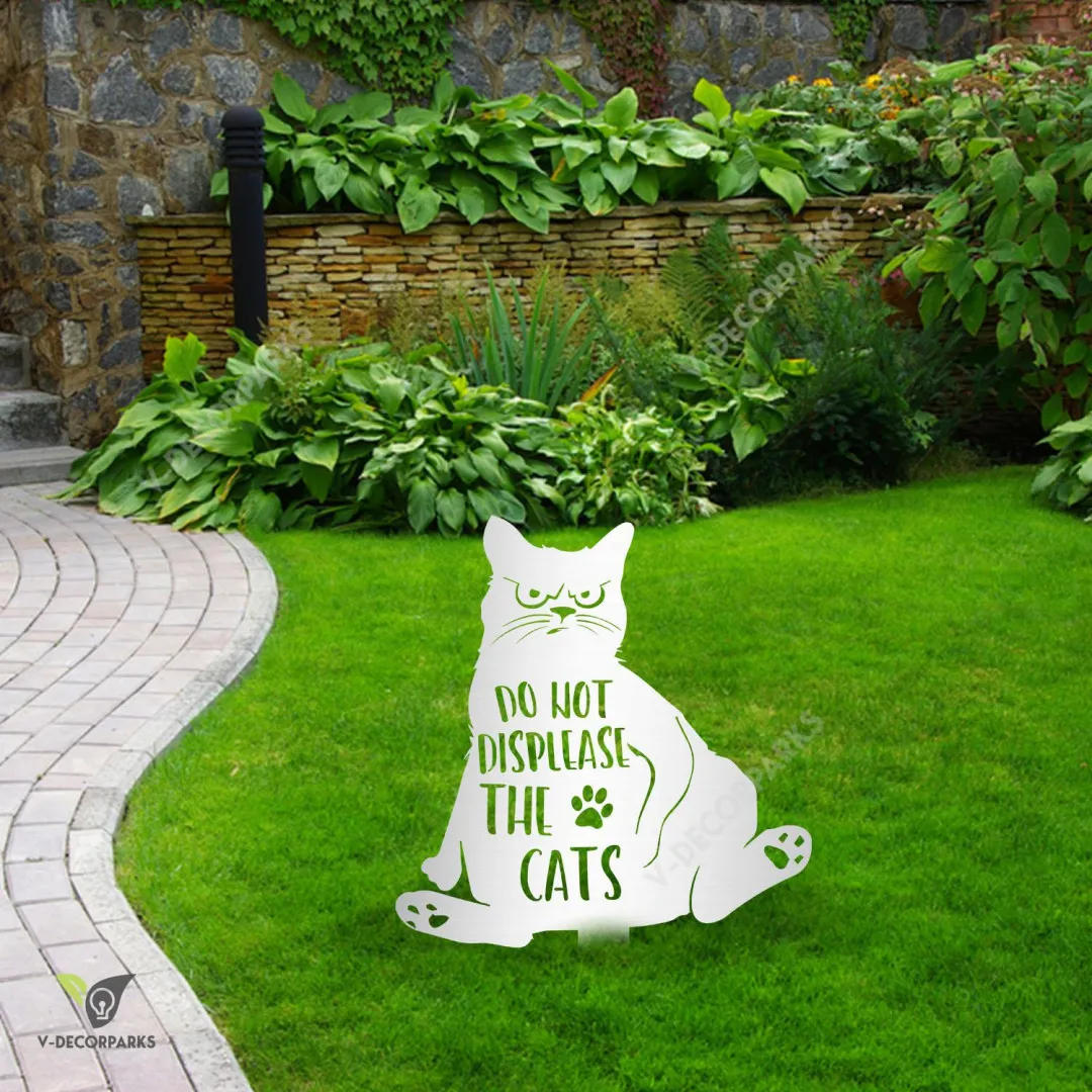 Do Not Displease The Cats Metal Garden Decor, Kitty House Decor