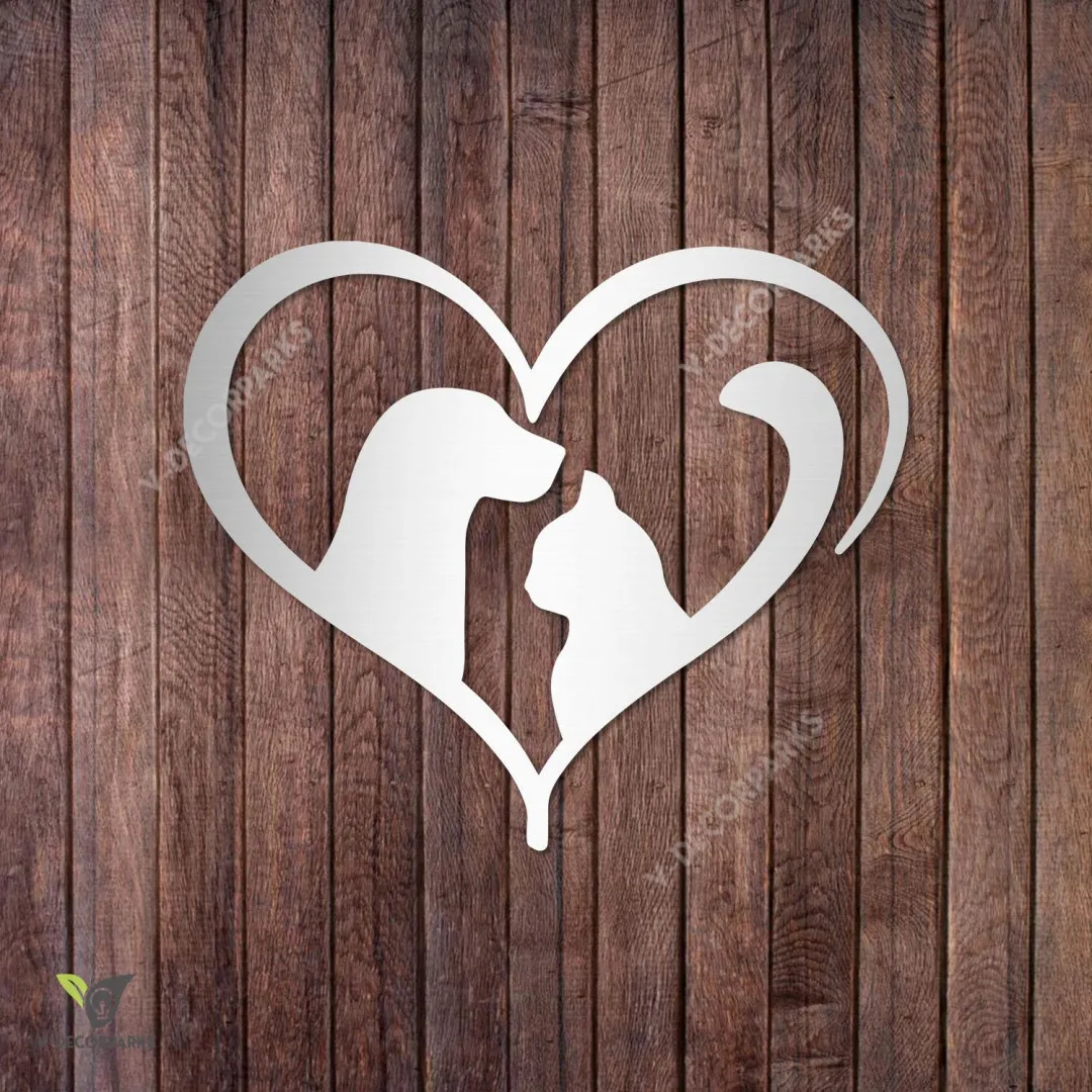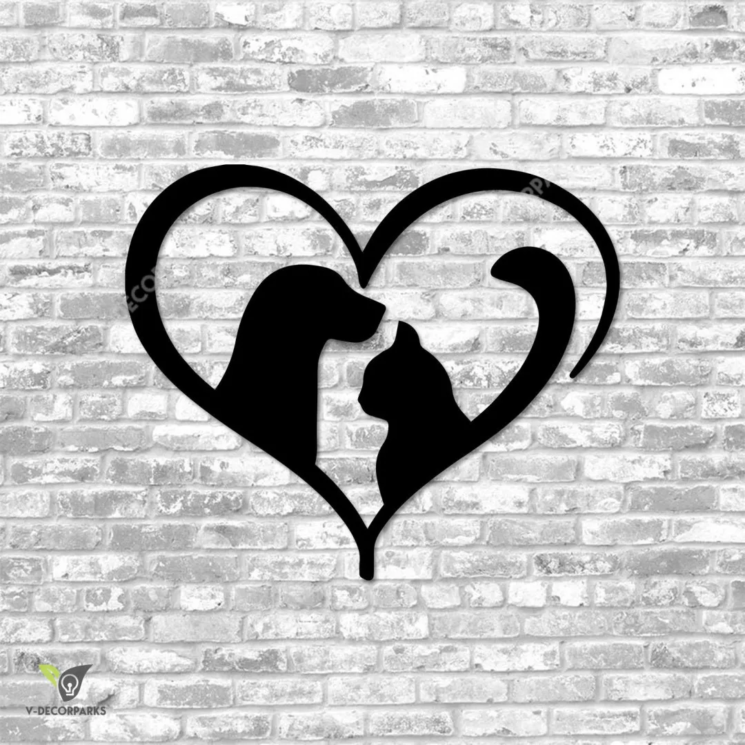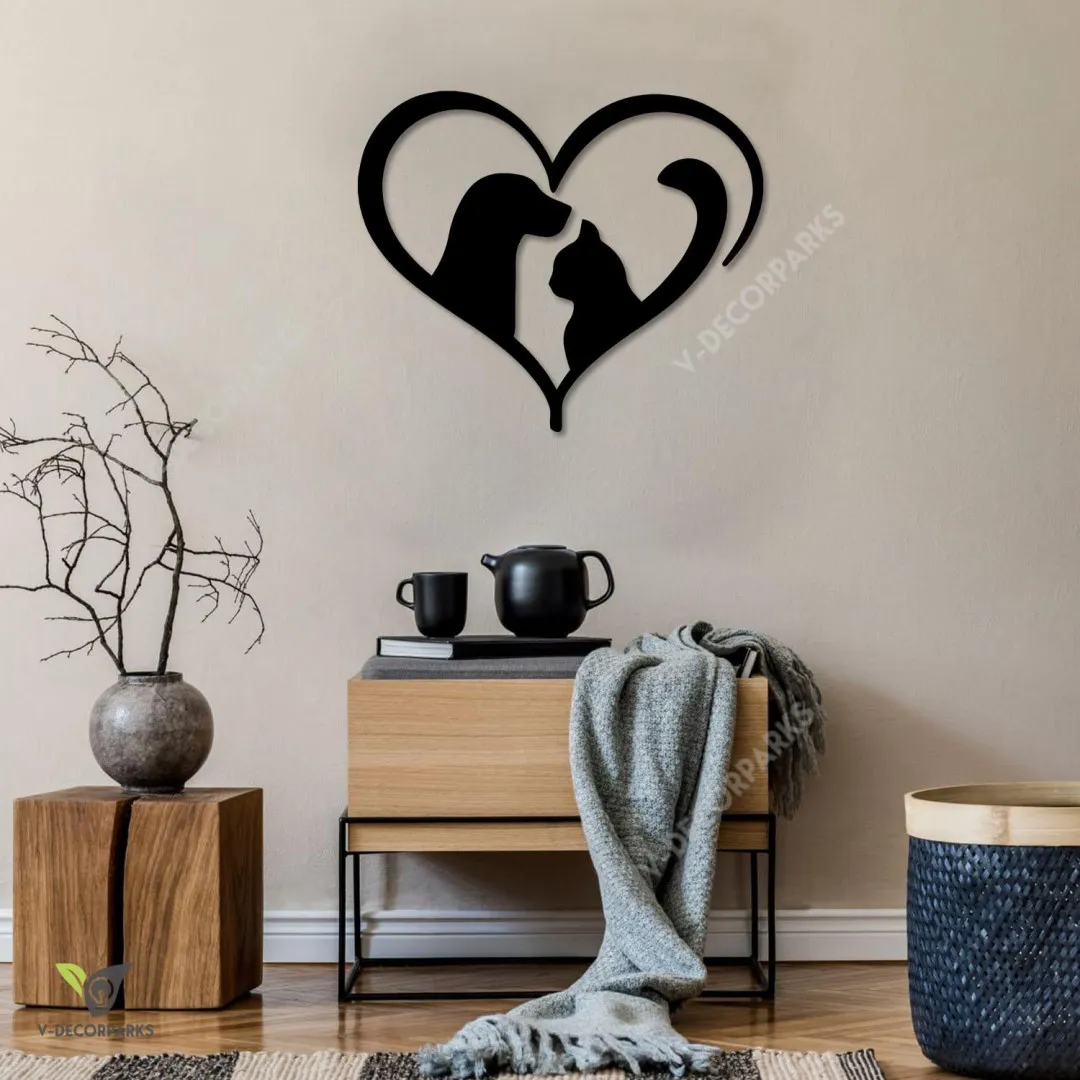 Dog And Cat Love Heart Metal Art, Dog And Cat, Pet Living Room Wall Hanging