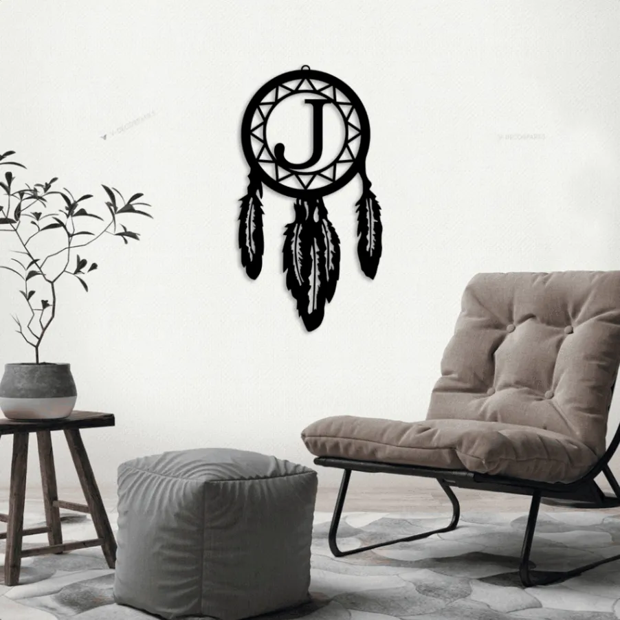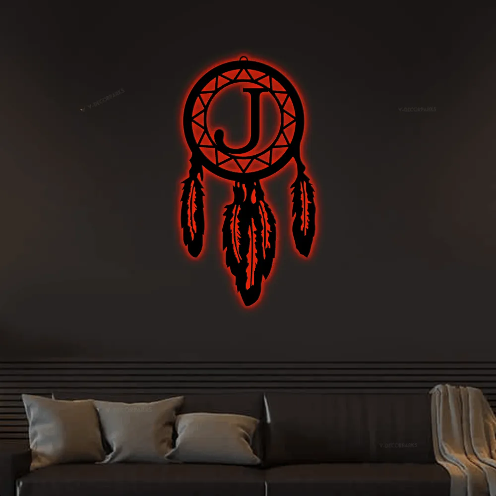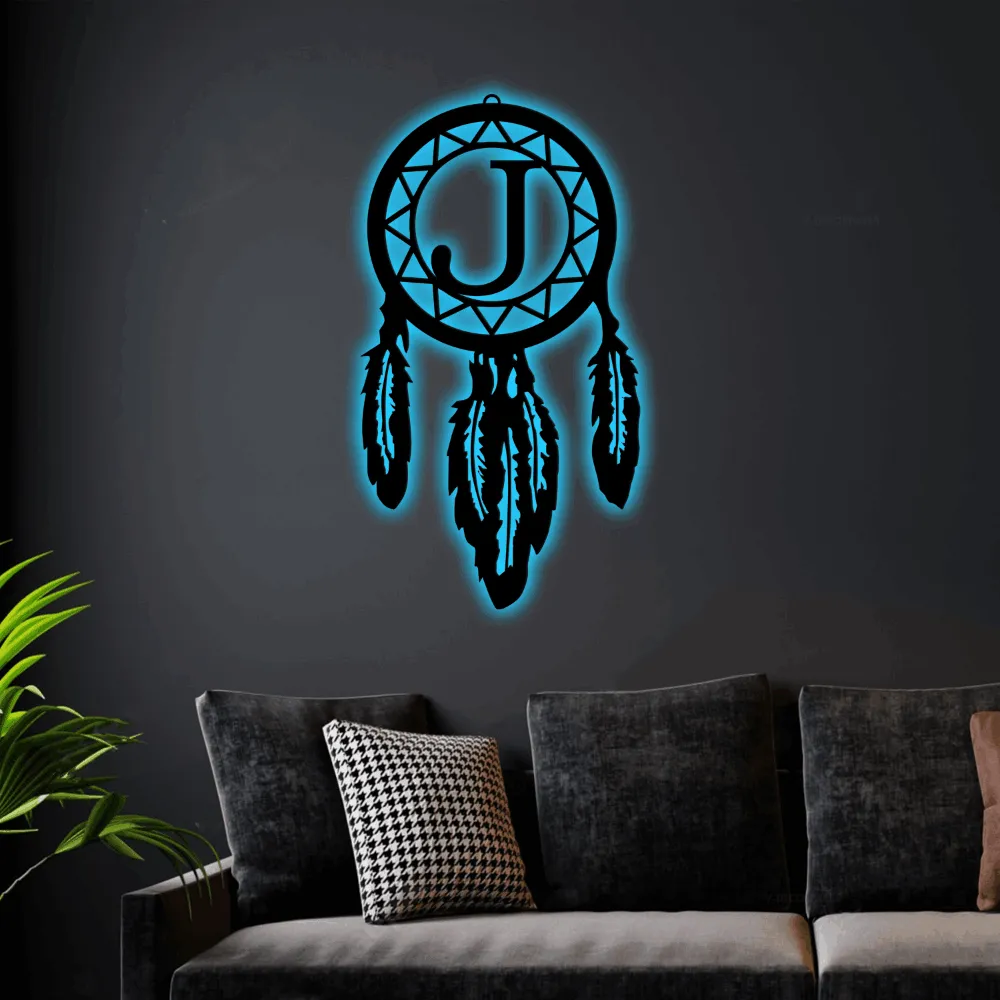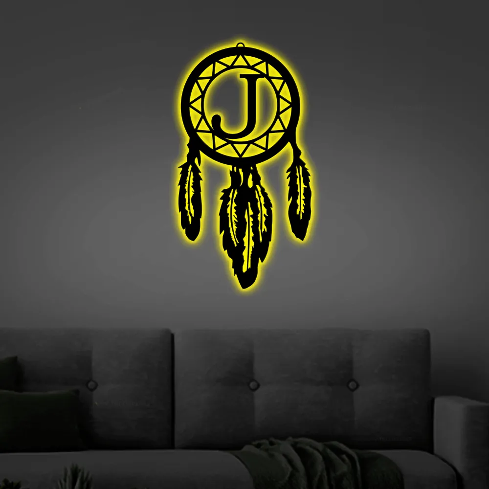 Dream Catcher With Led Lights Sign Monogram Steel Sign, Personalized Dream Catcher Hanging Wall Art Home Decor Living Room Wall Art Decor
