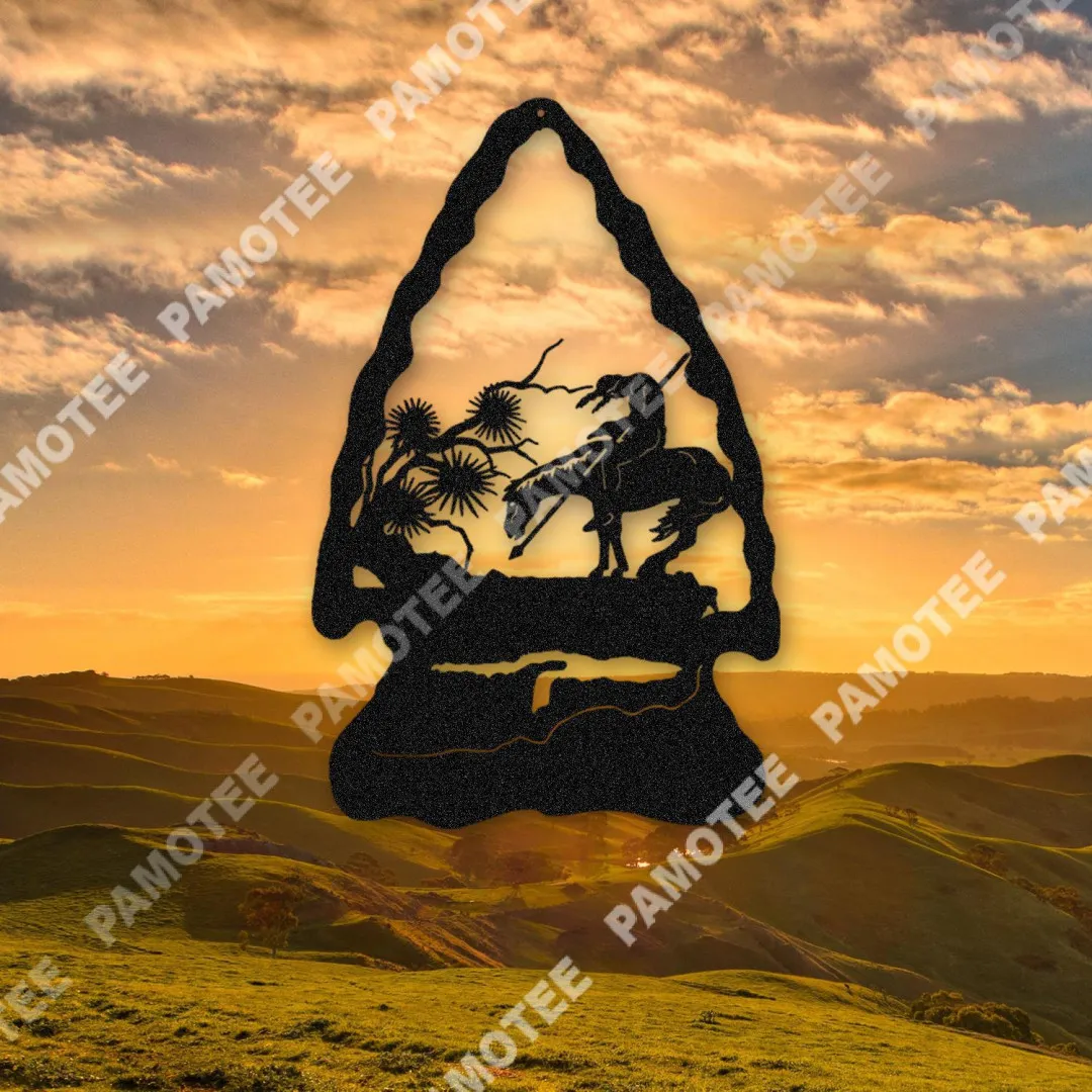 End Of The Trail Arrowhead American Native Metal Art, Home Steel Decor Monogram