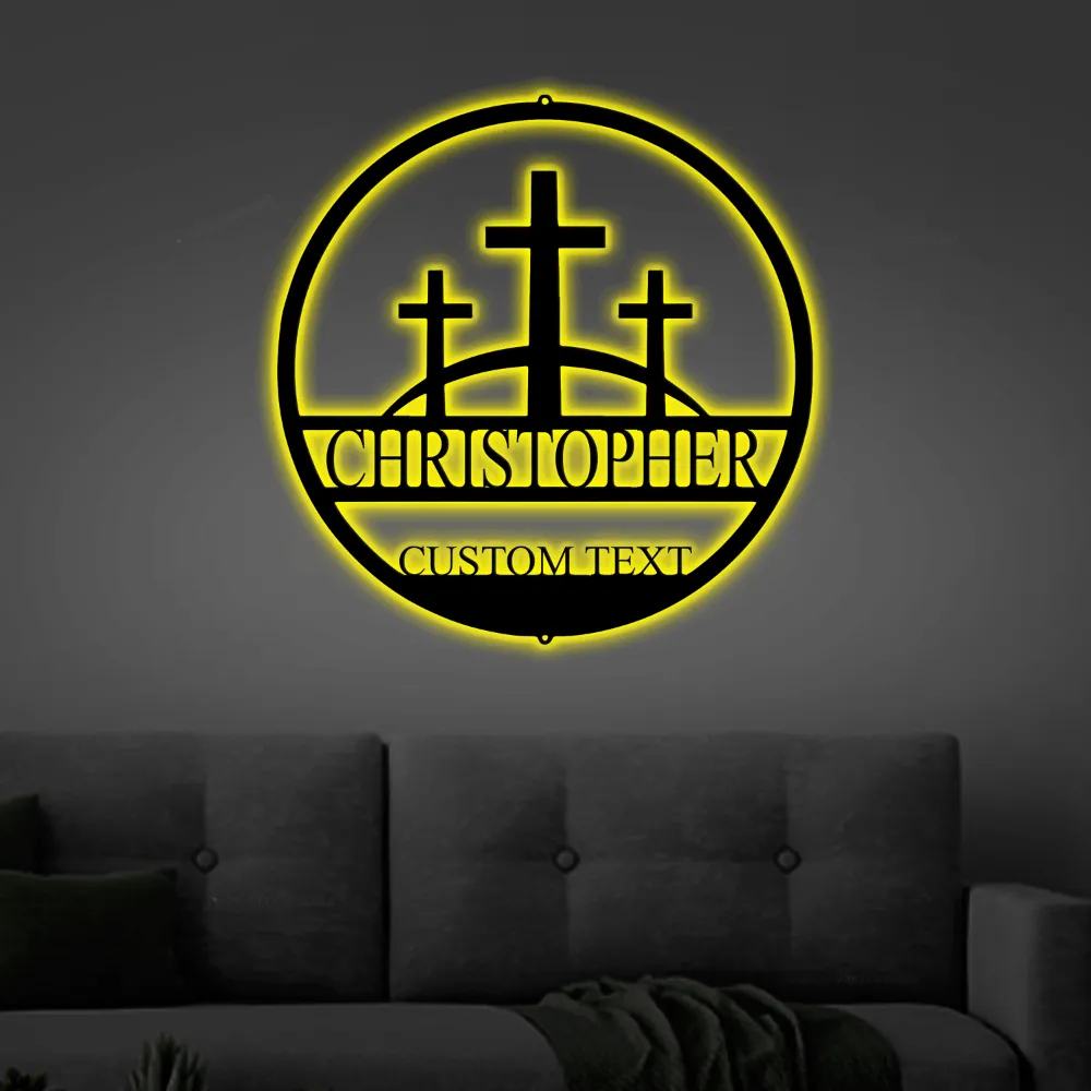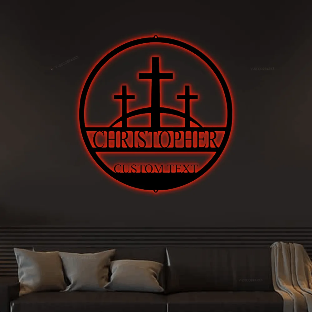 Faith Cross With Led Lights Sign Monogram Steel Sign, Christian Church Wall Art Religious Cross Wall Decor Baptism Gift Religious Gift