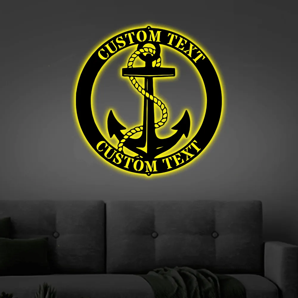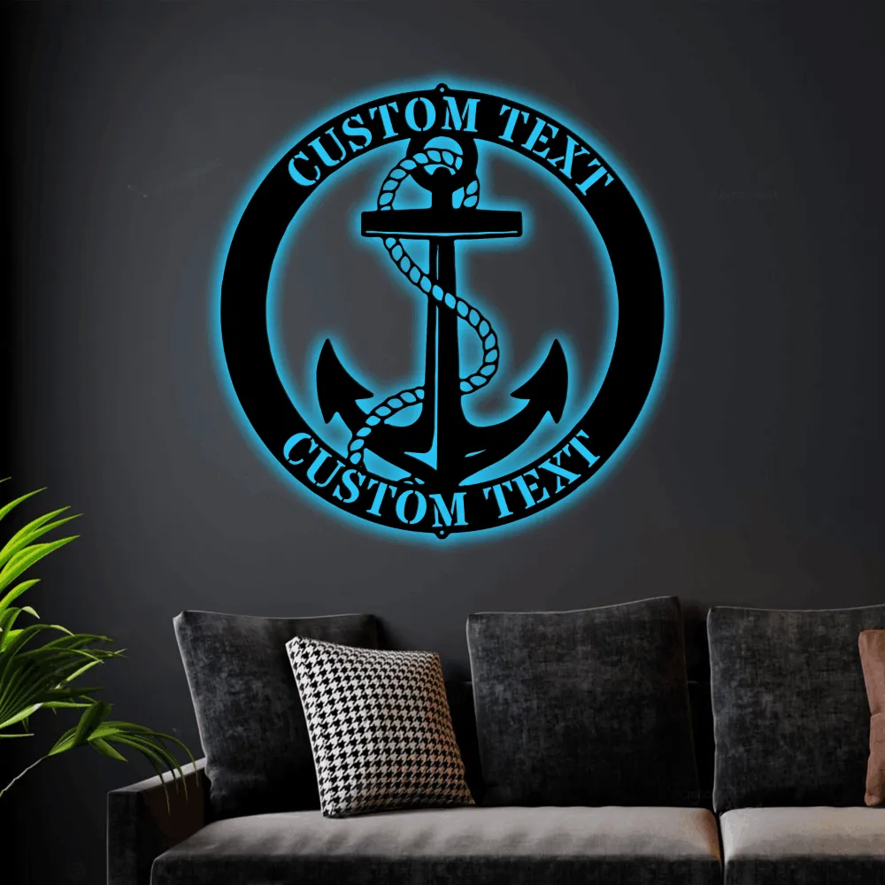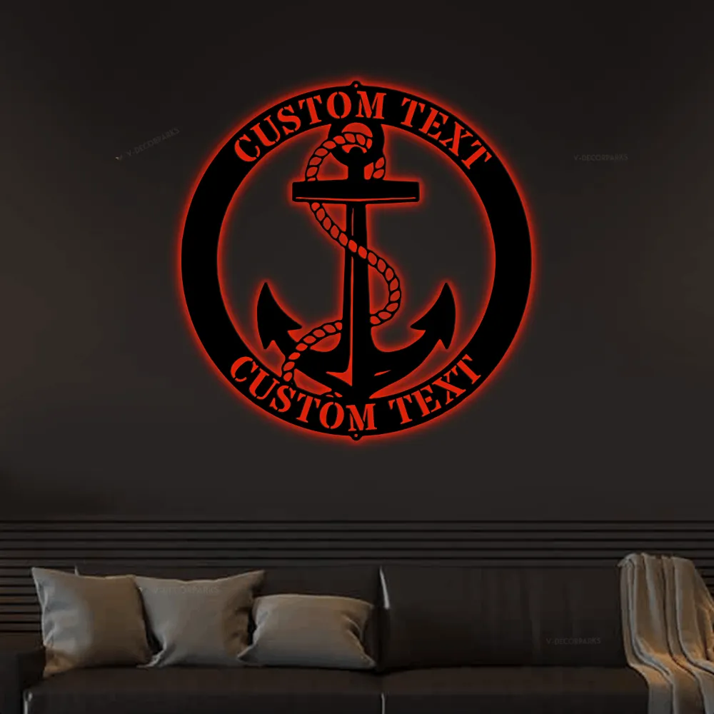 Family Name Anchor Led Lights Monogram Steel Sign Personalized Family Name Anchor Sign Housewarming Gift Nautical Decor Beach Decor