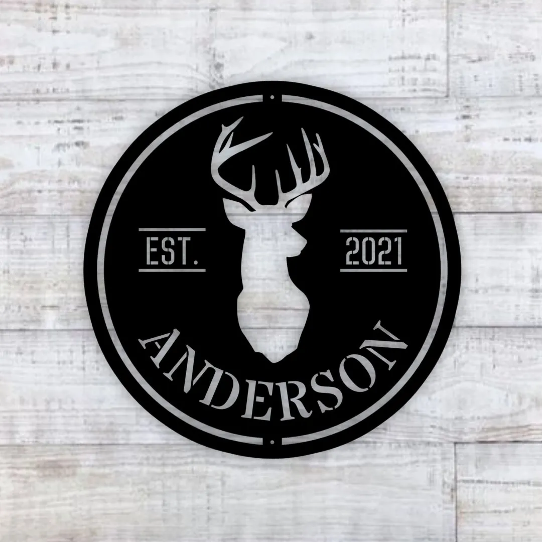 Family Name Deer Head Sign,deer Hunter Gift, Deer Camp Sign, Deer Name Metal Sign, Fathers Day Gift, Metal Sign For Camp, Cabin Metal Sign,