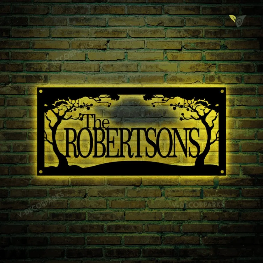 Family Name Metal Sign With Led Lights, Custom Family Name, Name Sign, Metal Wall Art, Outdoor Sign
