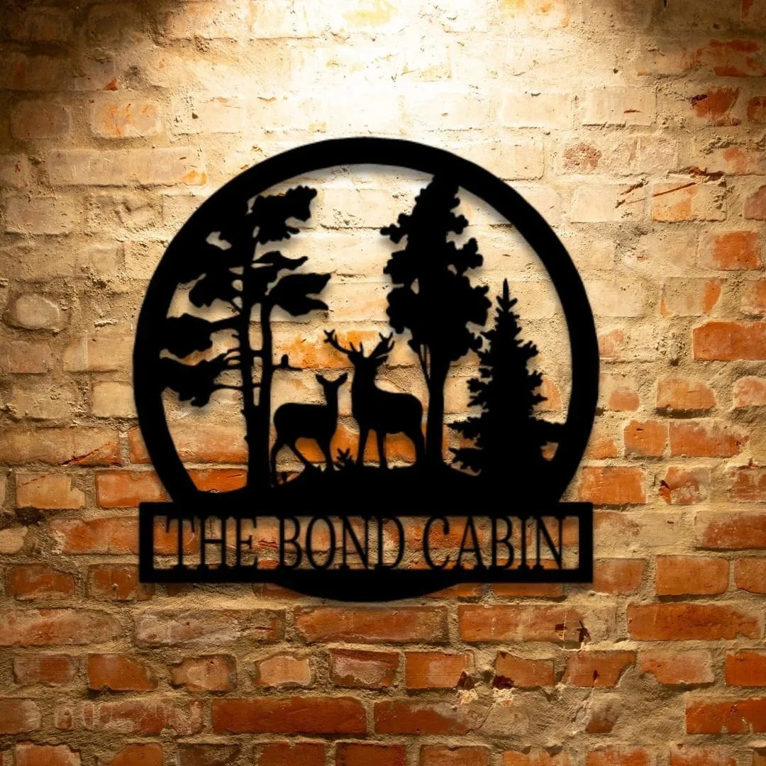 Family Name Sign, Established Sign, Steel Artwork Designer Deer In The Woods Stylish Name Sign, Housewarming Gift Animal Lover Sign