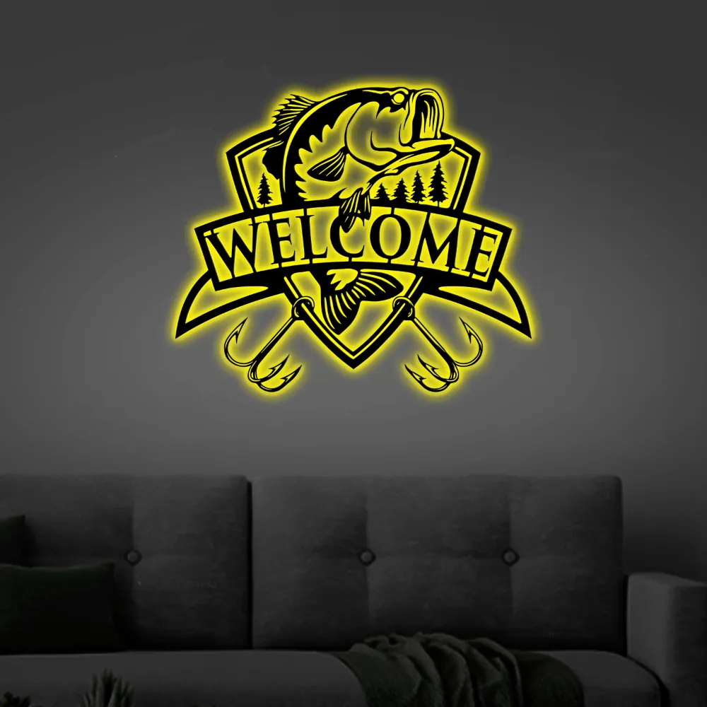 Fishing Metal Led Lights Sign, Bass Fishing Sign, Custom Metal Sign, Fish Metal Name Sign, Bass Fishing Art, Metal Fish Sign, Fisherman Gift