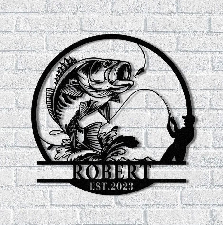Fishing Metal Sign, Fishing Gift For Men, Men Cave Sign, Fisherman Gift, Custom Fish Name Sign, Bass Fishing Sign, Personalized Fish Wall Art