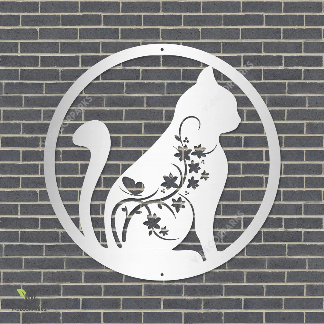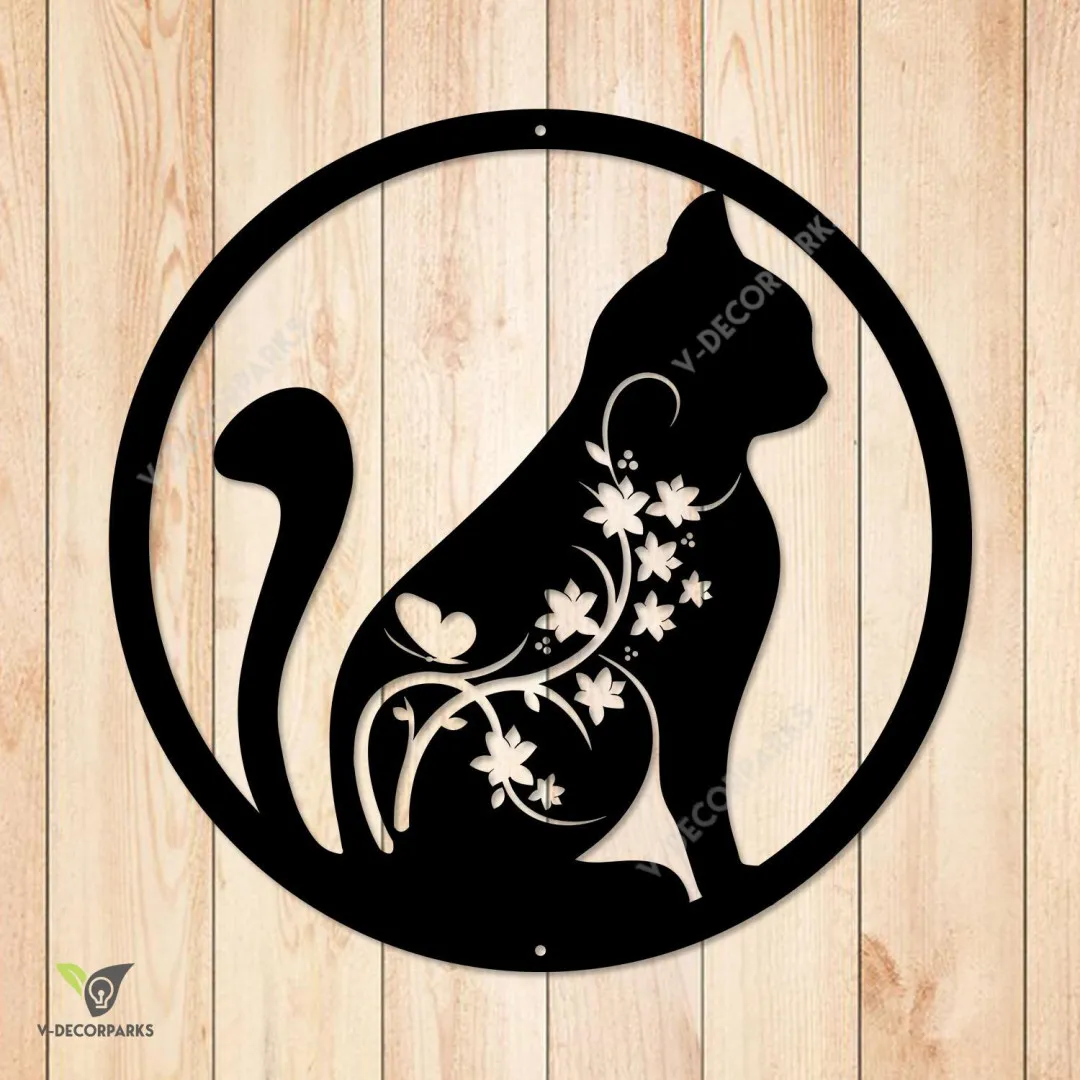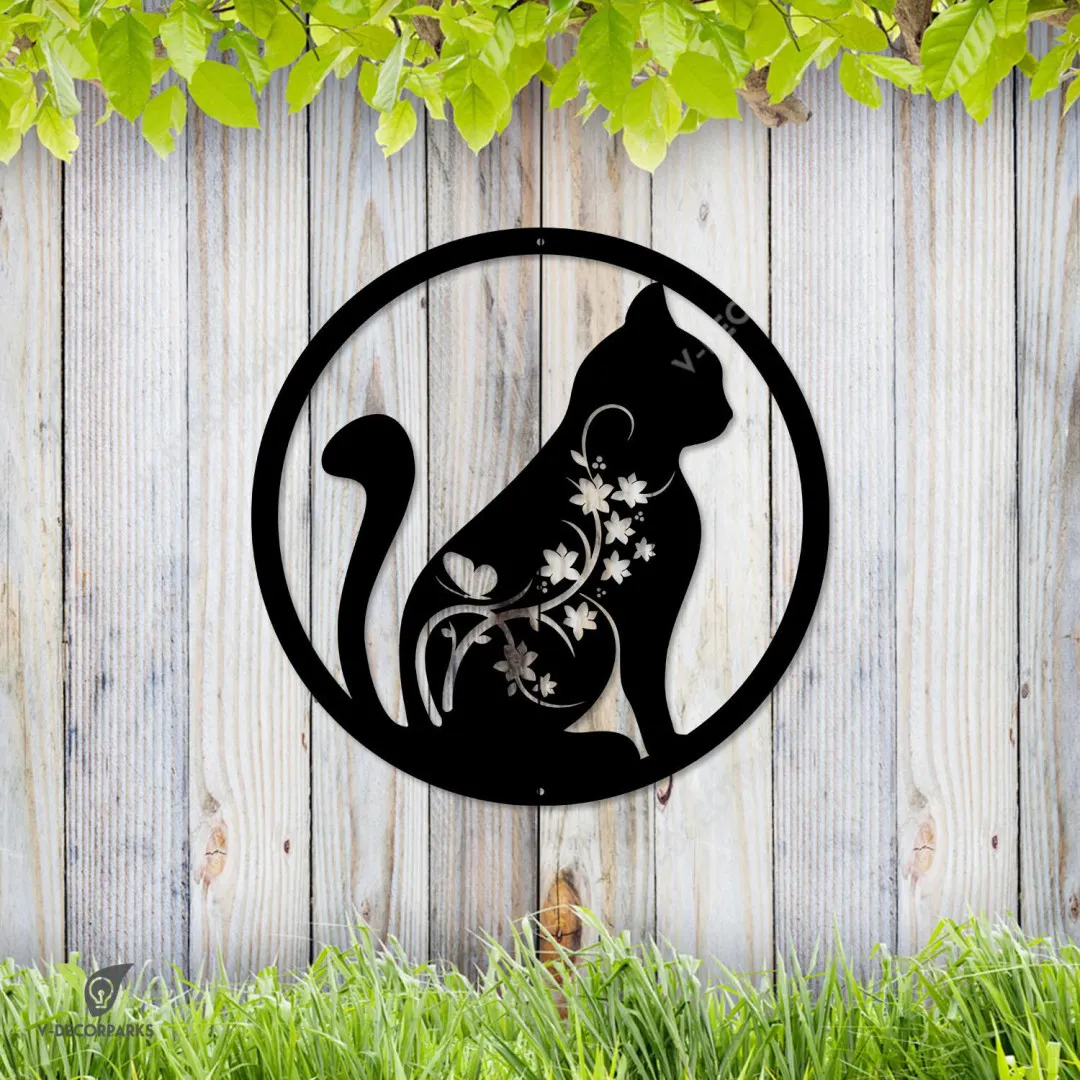 Floral Cat Circle Metal Art, Floral Cat Inner Plaque