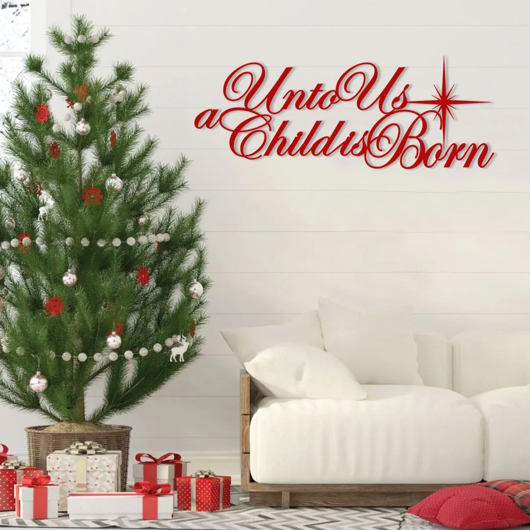 For Unto Us A Child Is Born Christmas Metal Sign, Nativity Jesus Born Wall Hanging
