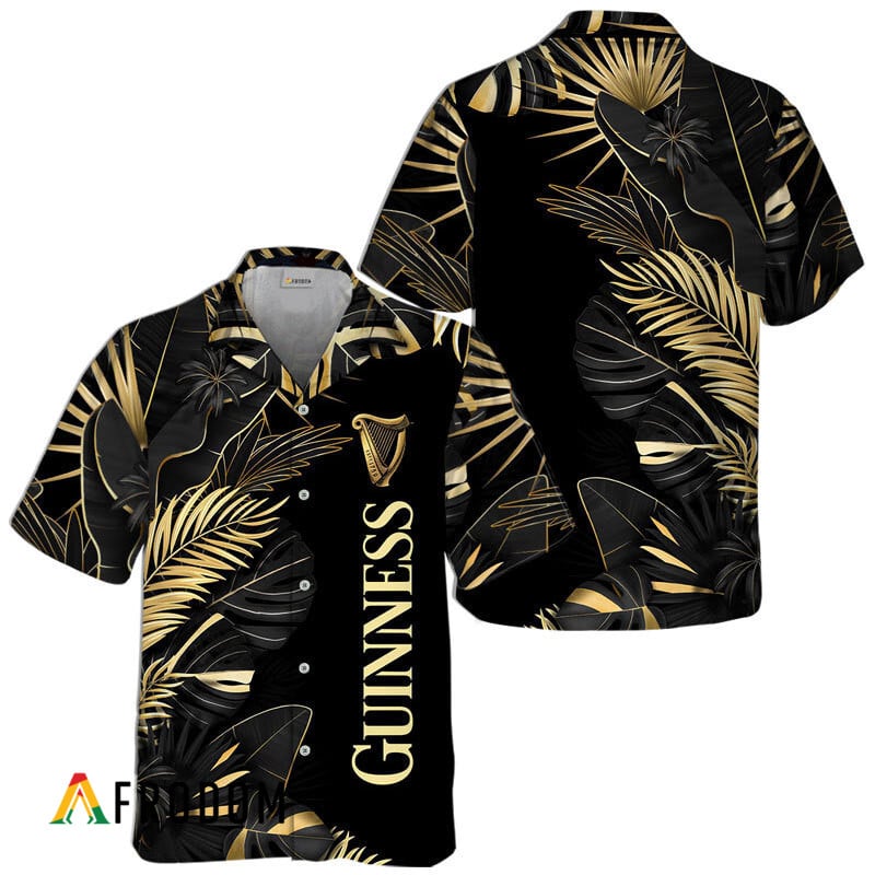 Guinness Hawaiian Shirt For Men – Golden Tropical Palm Leaves – Casual Summer Outfit For Husband