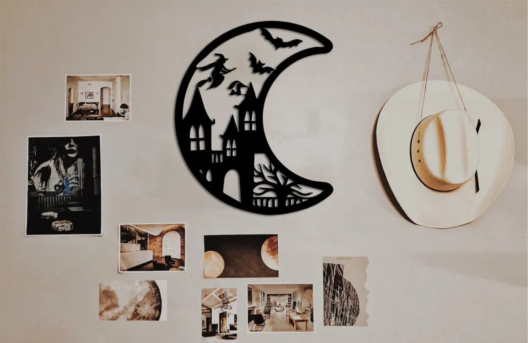 Halloween Crescent Moon Halloween Decor, Halloween Accessories, Black Metal Houses, Witch Sign, Creepy House Art, Halloween Gifts