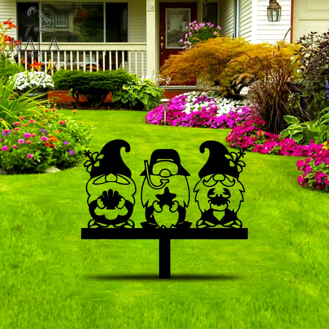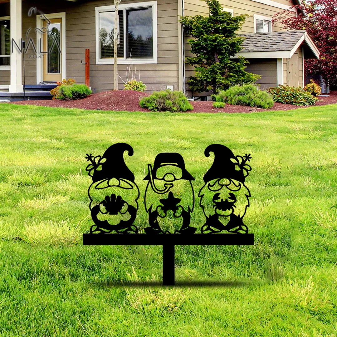 Hawaiian Ganomes And Sea Creatures Metal Yard Sign Stake, Gnome Metal Garden Decor, Garden Stake For Hawaii Lovers