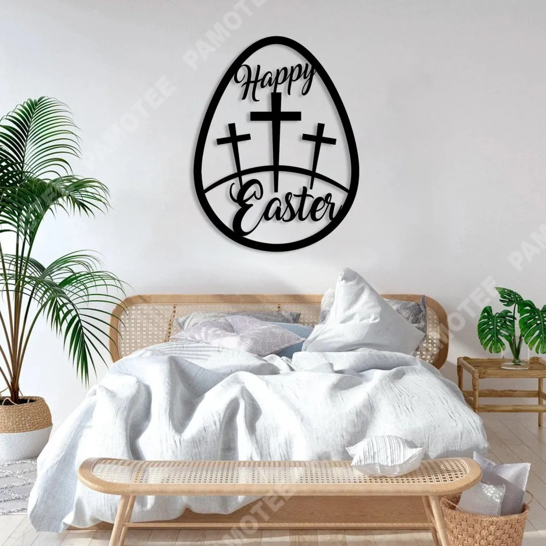 He Is Risen Three Crosses In Easter Egg Metal Art, Jesus Home Decor