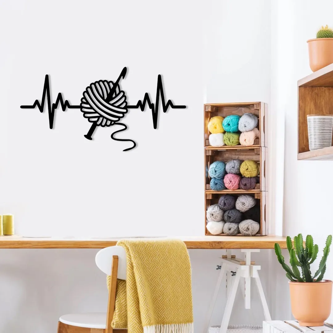 Heart Beat And Crochet Knitting Metal Sign, Crochet Room Decoration