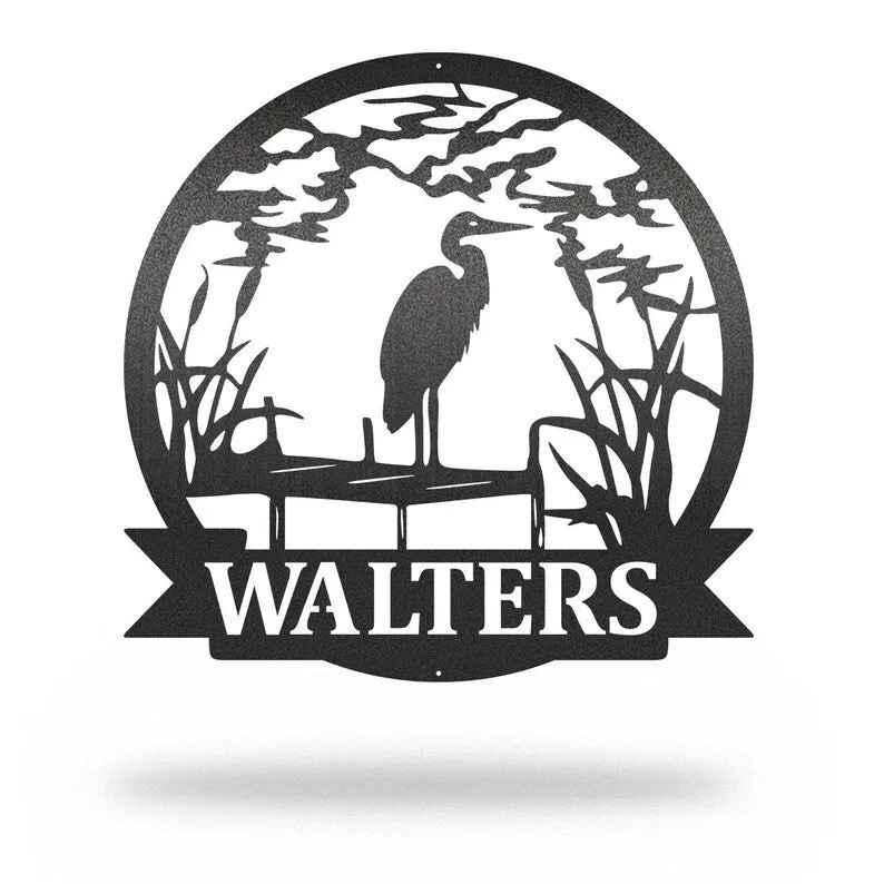 Heron Monogram, Personalized Heron Décor, Coastal Sign, Family Name Sign, Coastal Art Wall And Door Decor