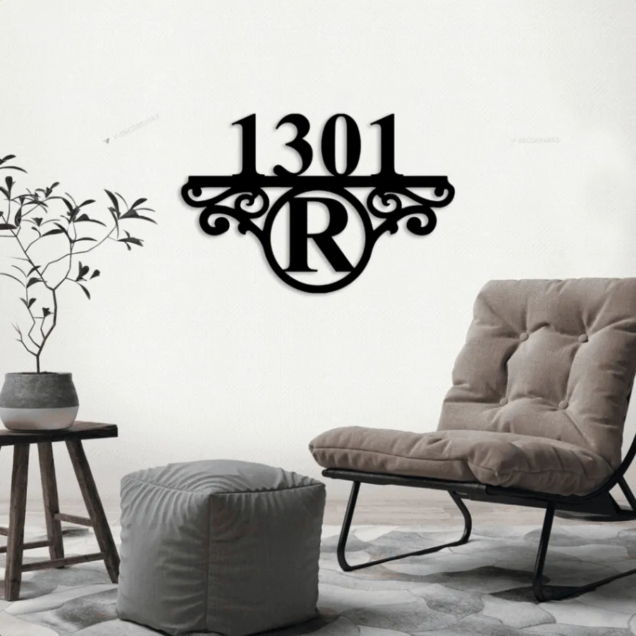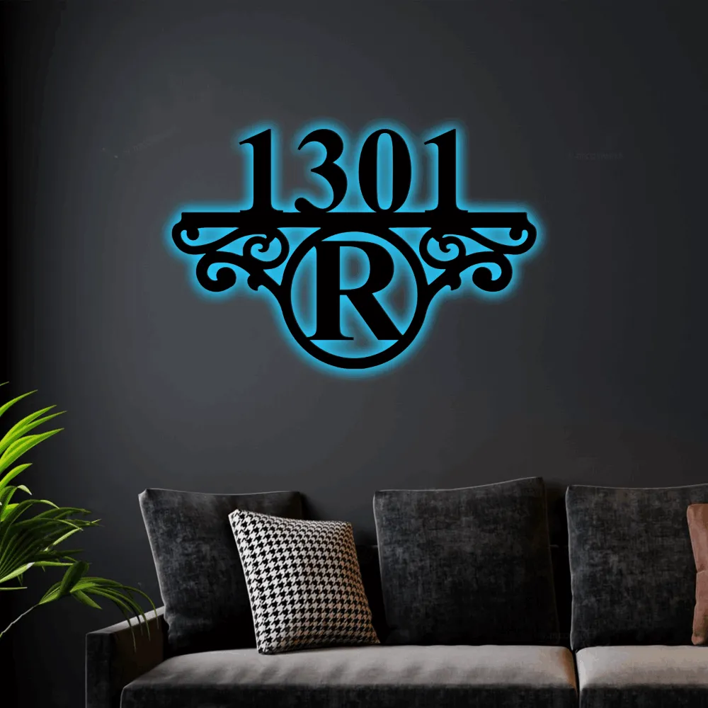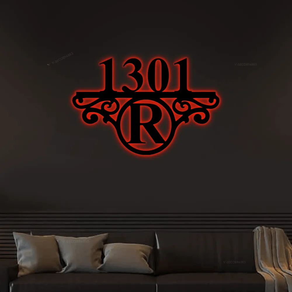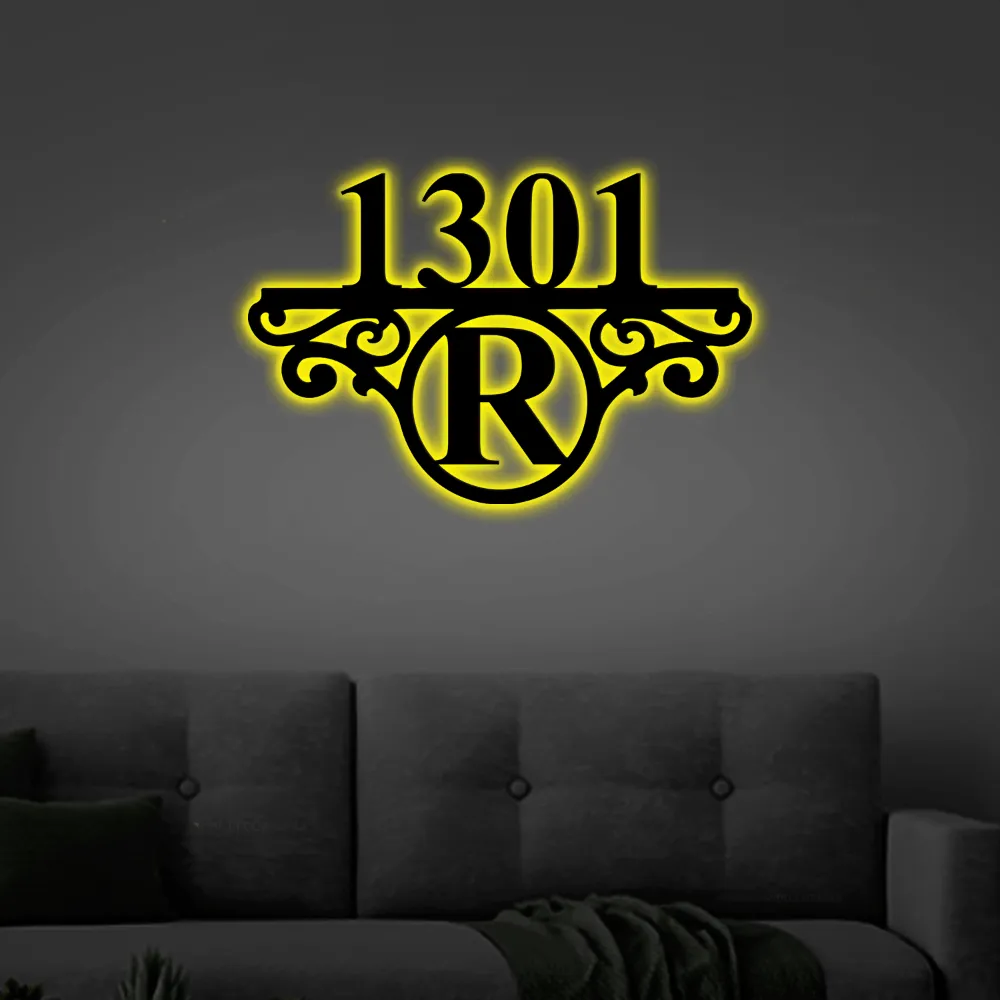 House Number With Led Lights Sign Monogram Wall Art Initial Monogram Wall Art Custom House Number Steel Decor Custom Sign Home Decor