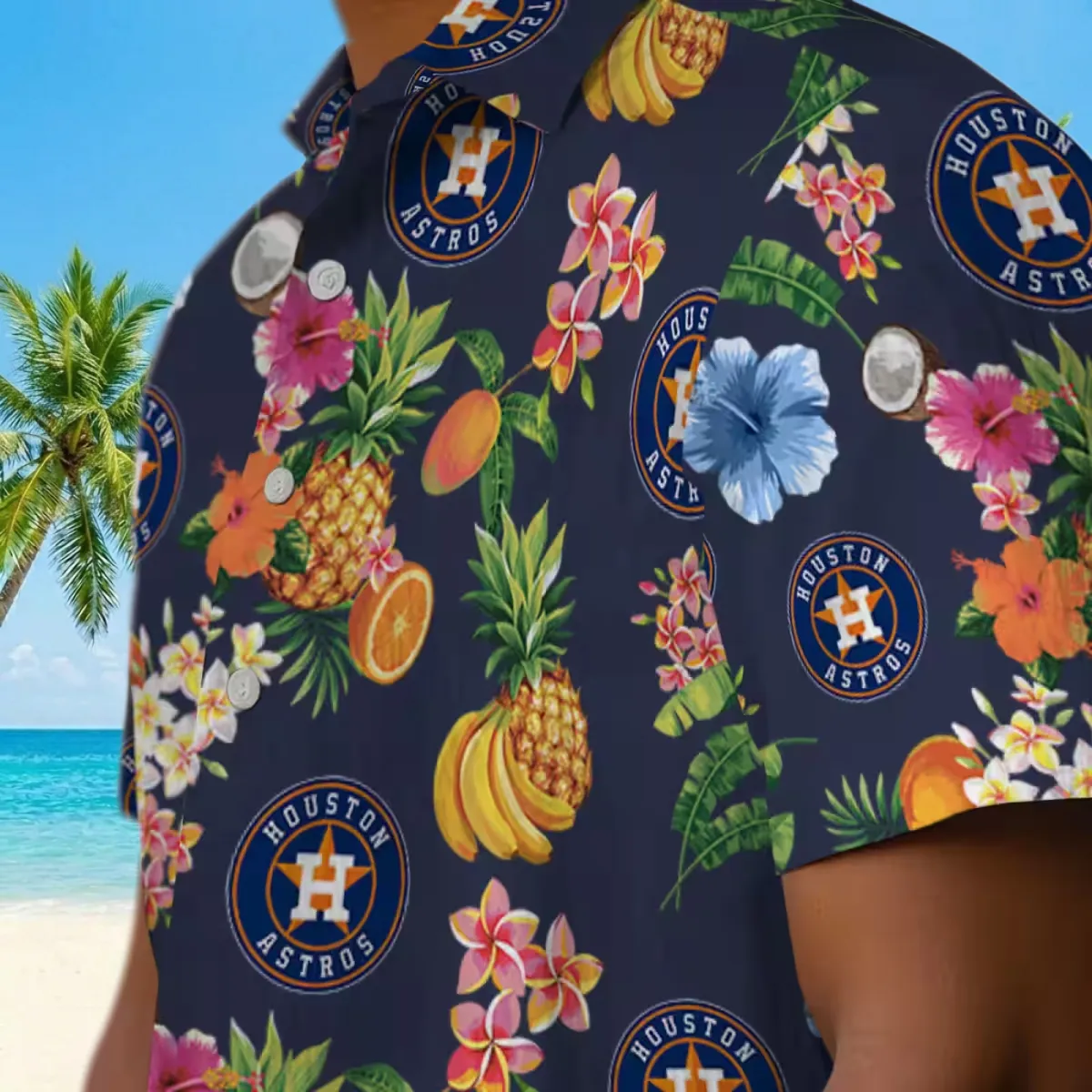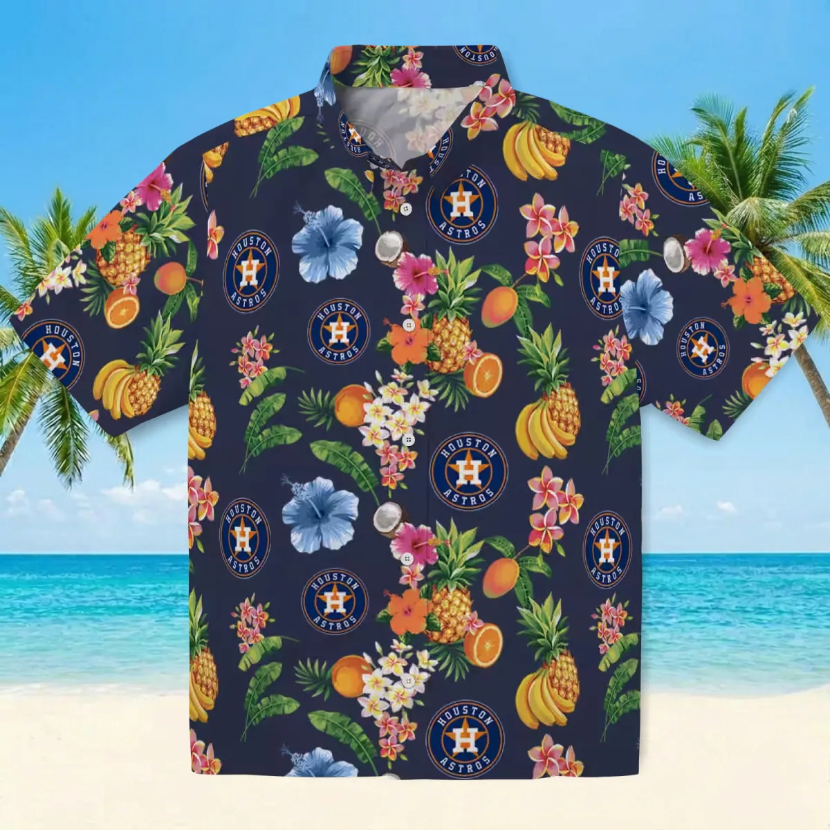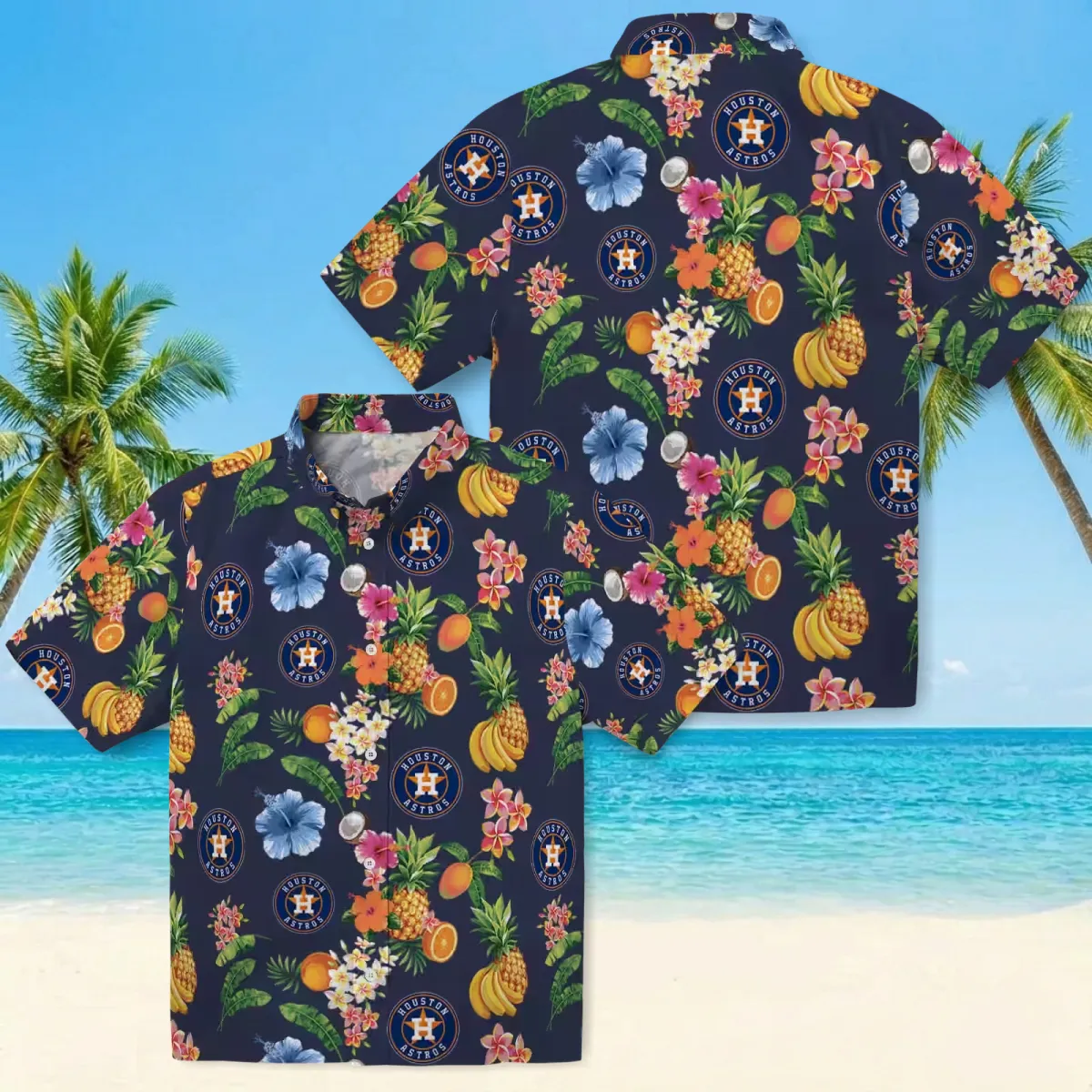 Houston Astros Hawaiian Shirt – Hibiscus And Fruit Navy Blue – Gift For Men, Women