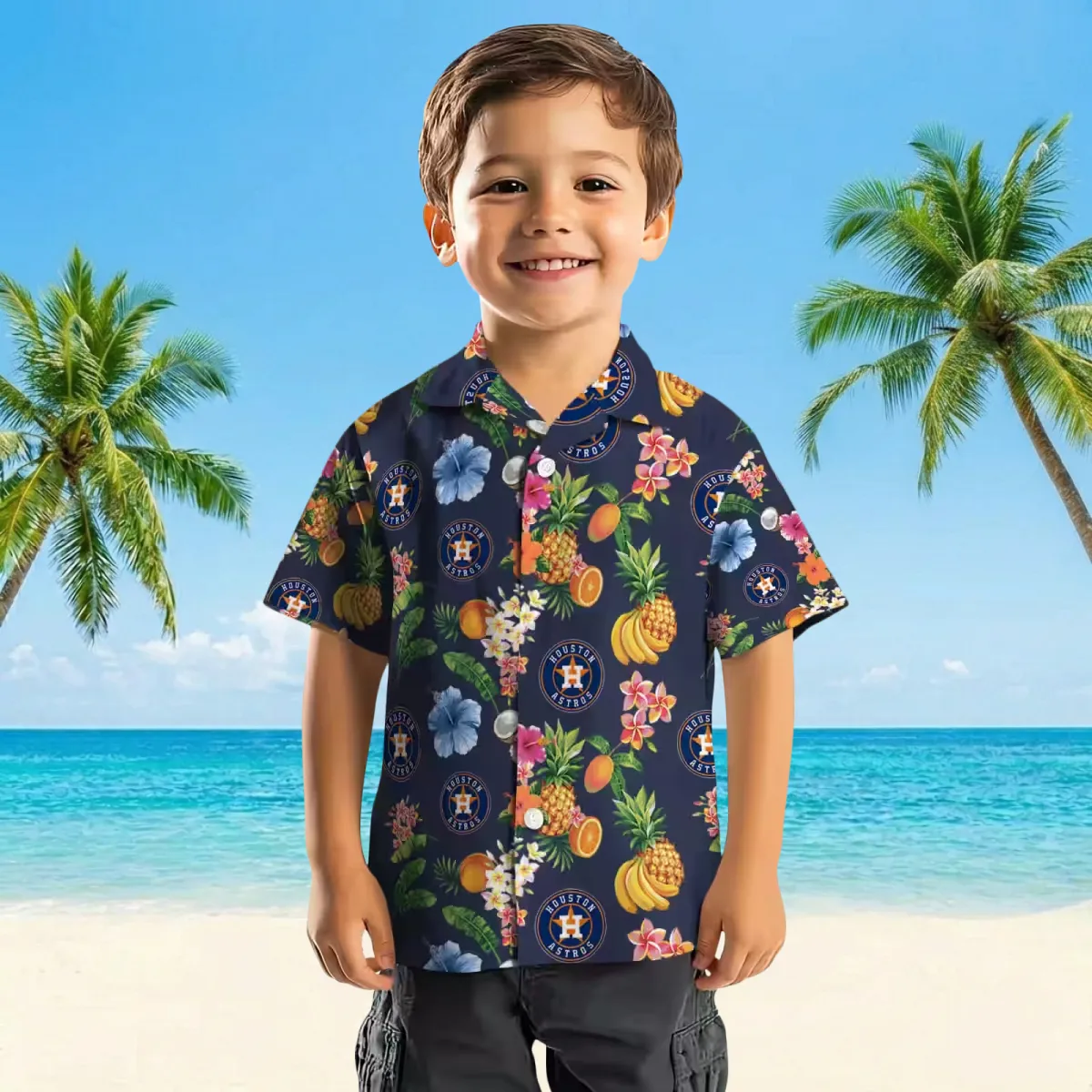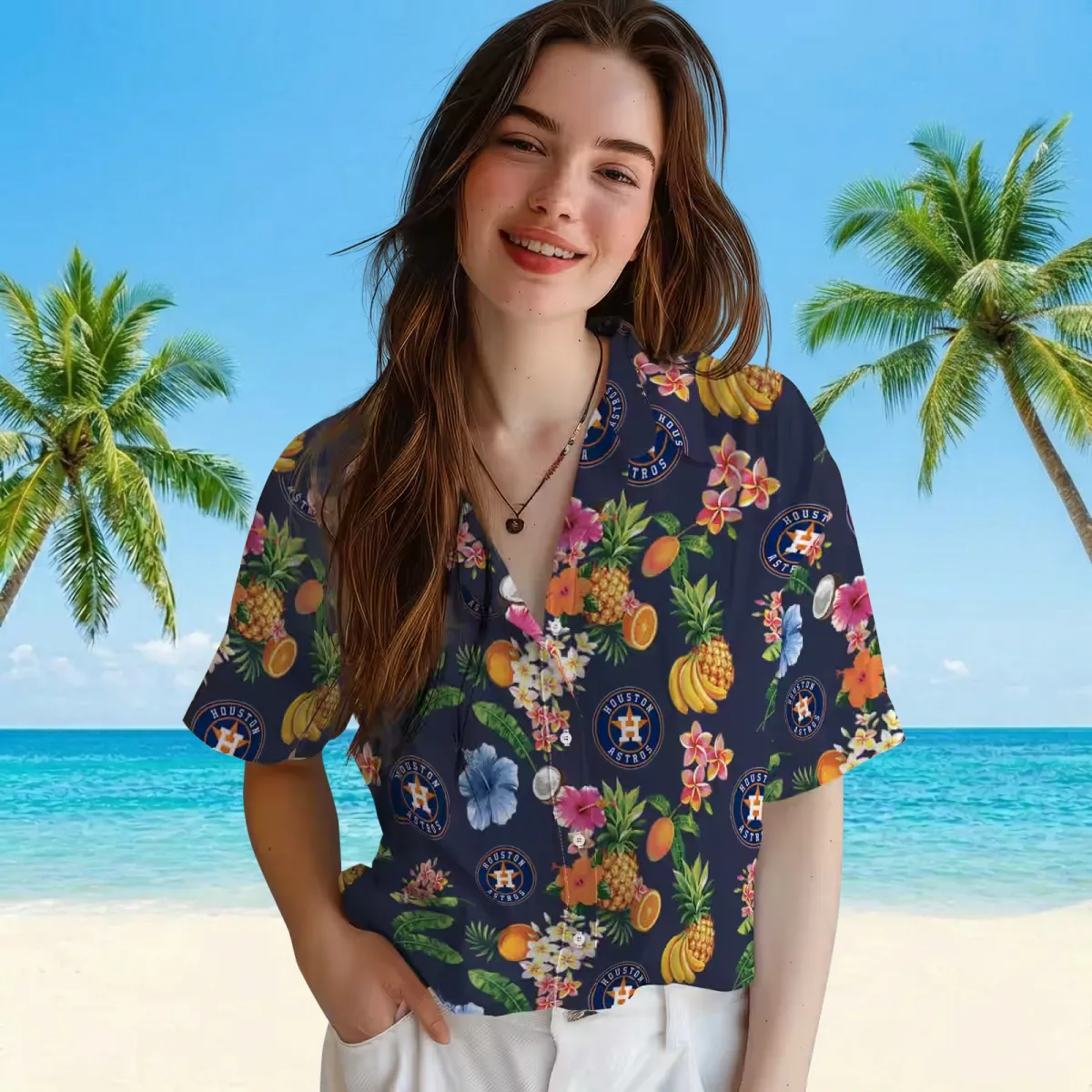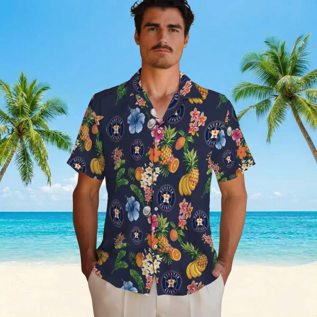 Houston Astros Hawaiian Shirt – Hibiscus And Fruit Navy Blue – Gift For Men, Women