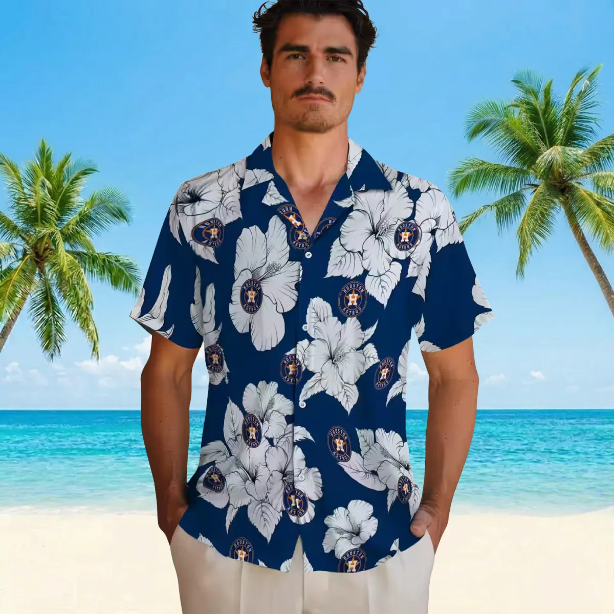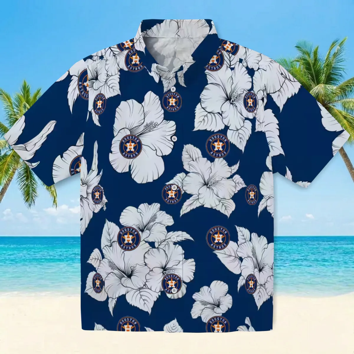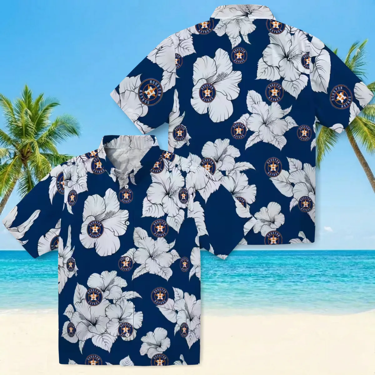 Houston Astros Hawaiian Shirt – Hibiscus Blooms Blue White – Gift For Men, Women
