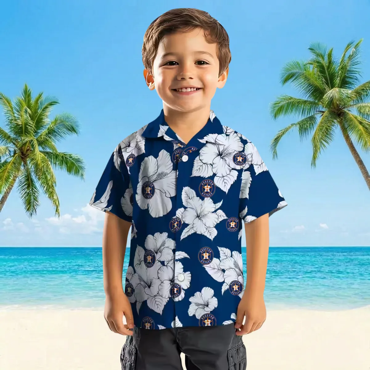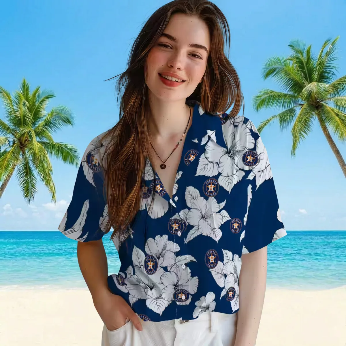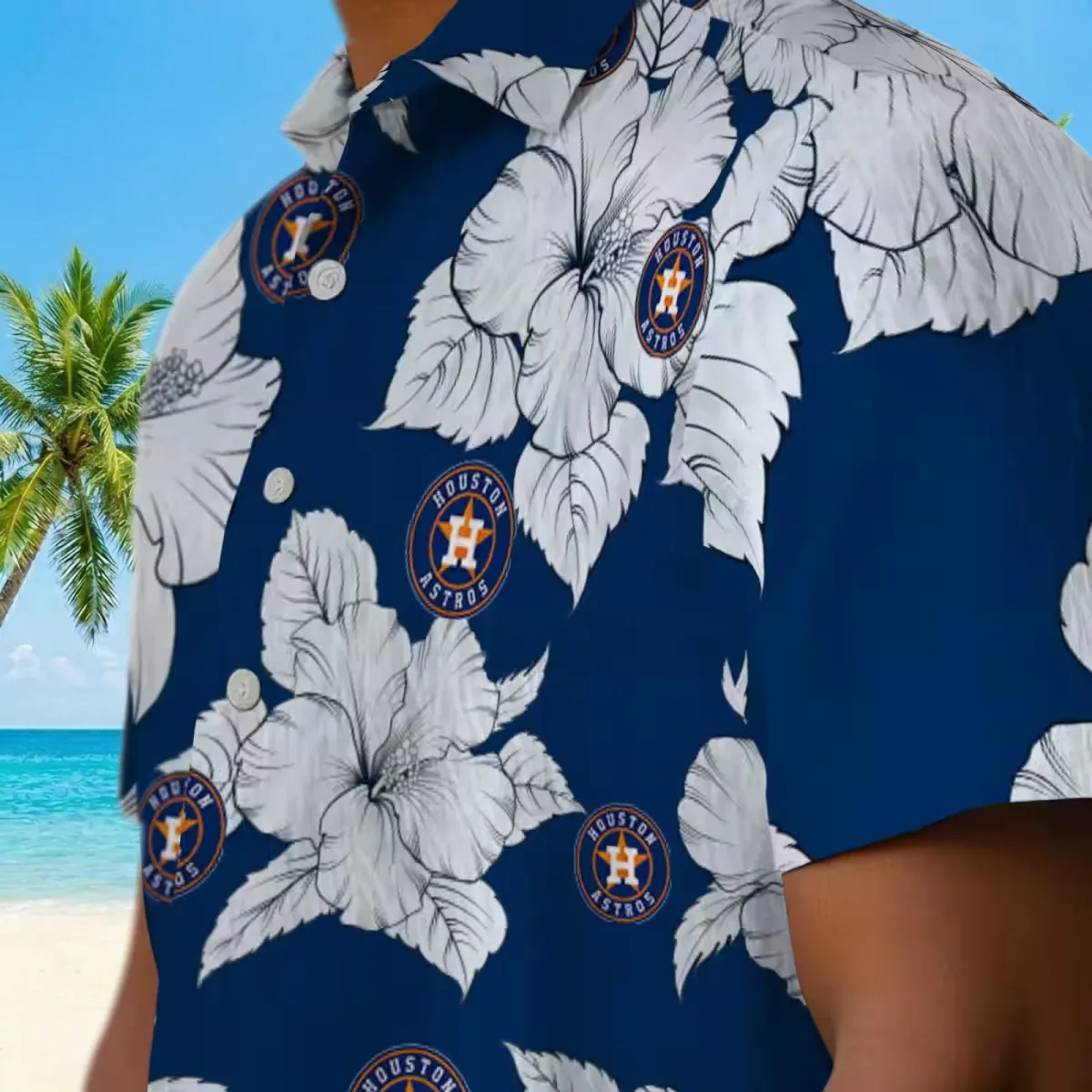 Houston Astros Hawaiian Shirt – Hibiscus Blooms Blue White – Gift For Men, Women