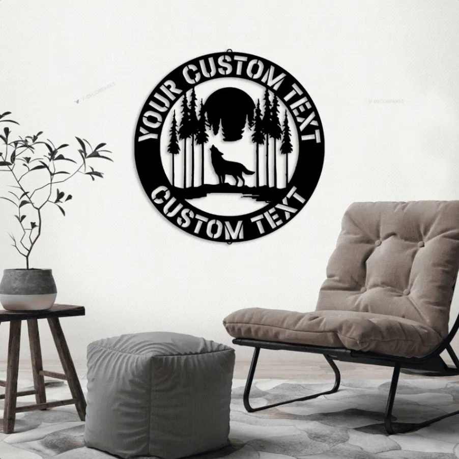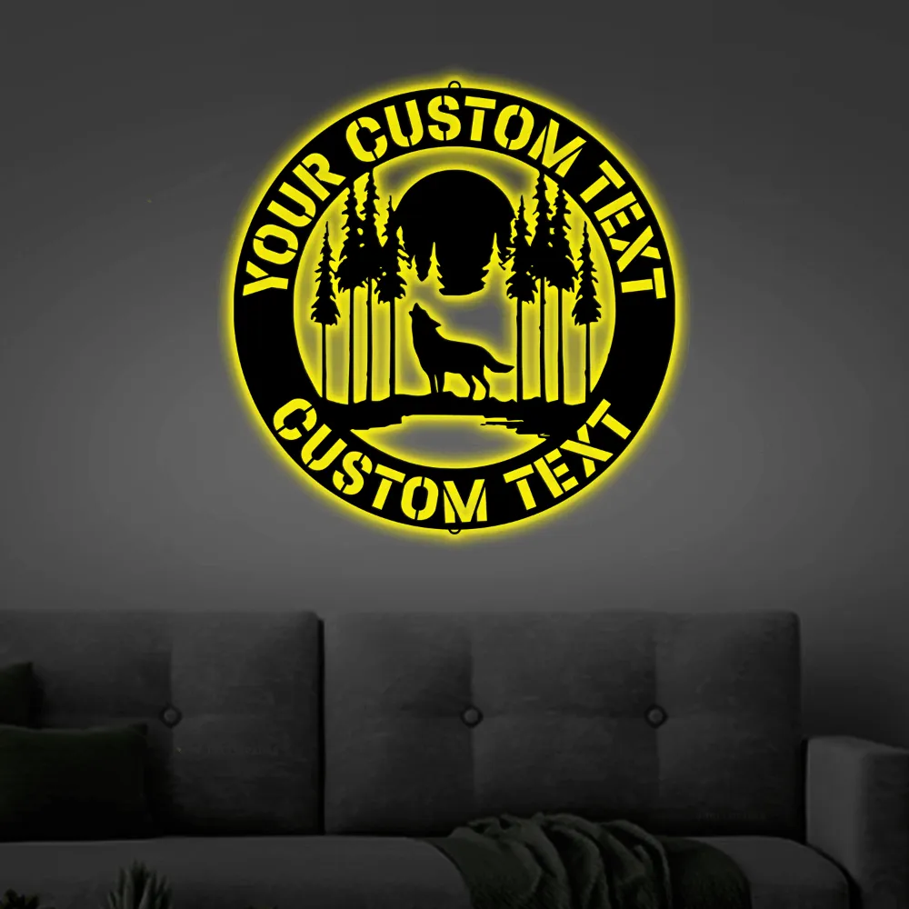 Howling Wolf Sign Led Lights Monogram Steel Sign Personalized Howling Wolf In The Wild Wall Art Decor Last Name Monogram Home Decor