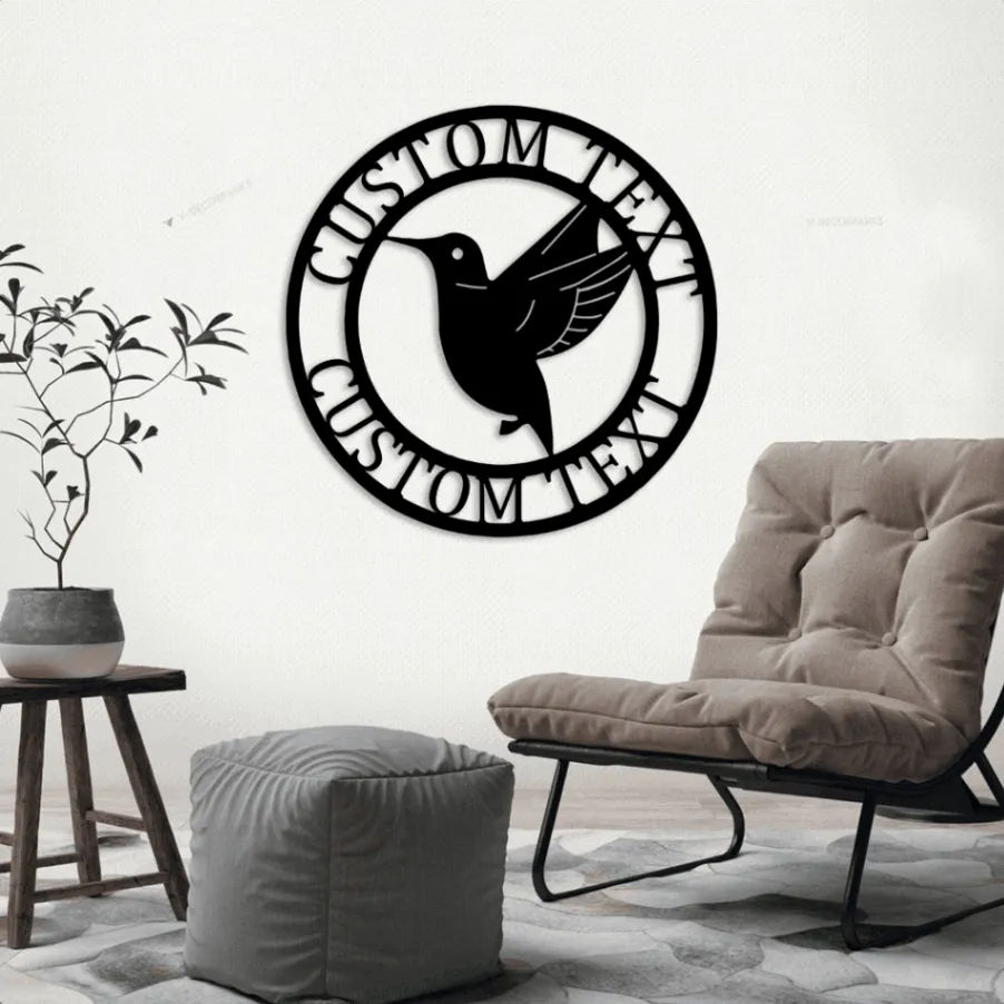Hummingbird Led Lights Sign Monogram Steel Sign, Personalized Hummingbird Monogram Wall Art Home Wall Art Decor Mothers Day Gift
