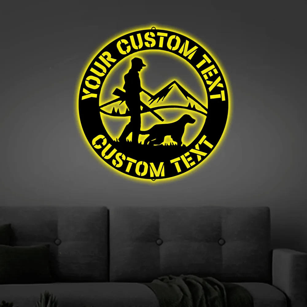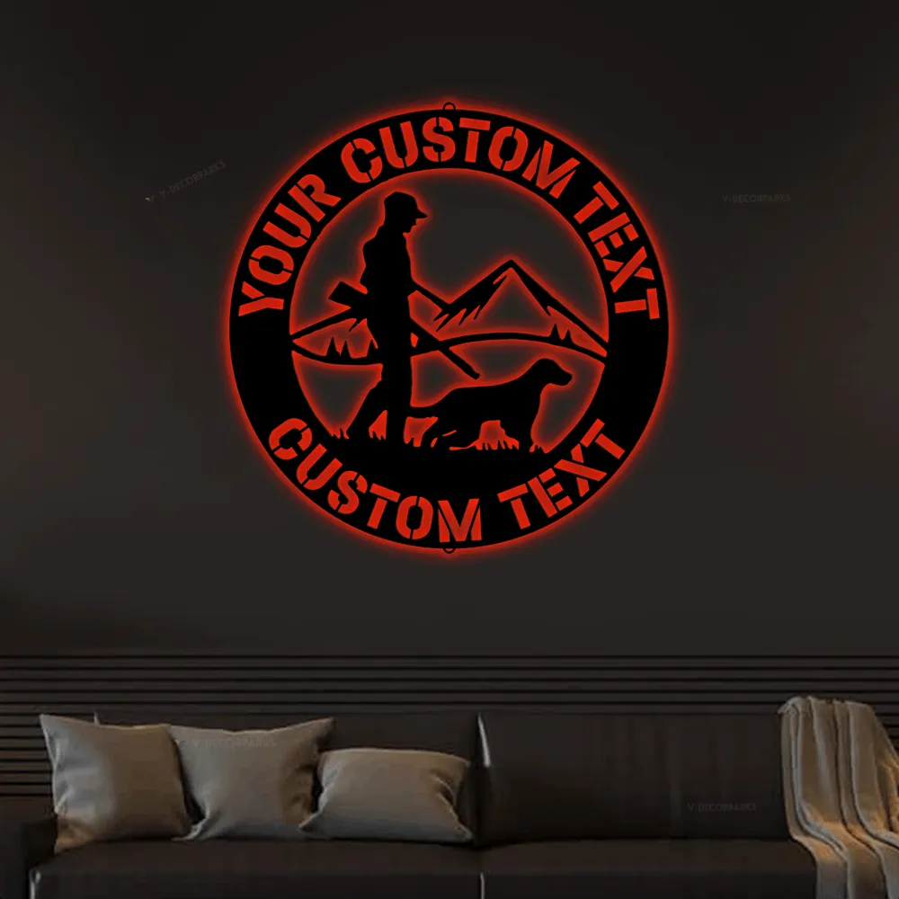 Hunter Dog Sign With Led Lights Monogram Steel Sign Personalize Hunter And Dog Monogram Wall Art Decor Home Wall Decor Housewarming Gift