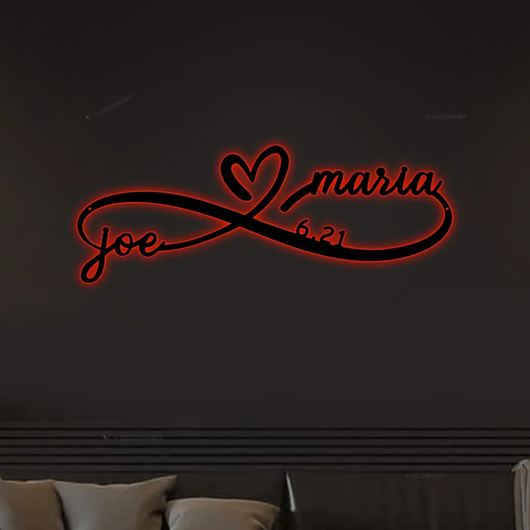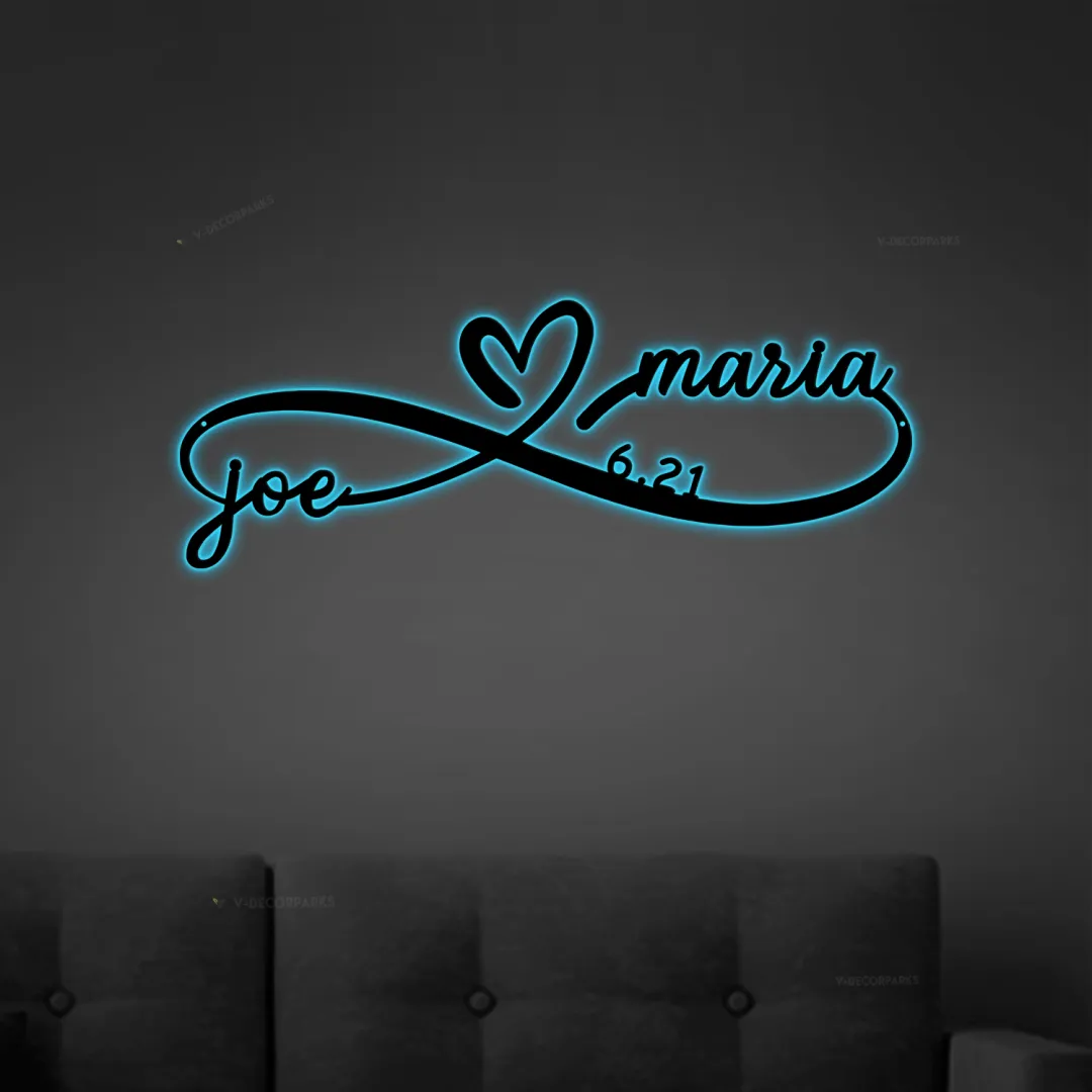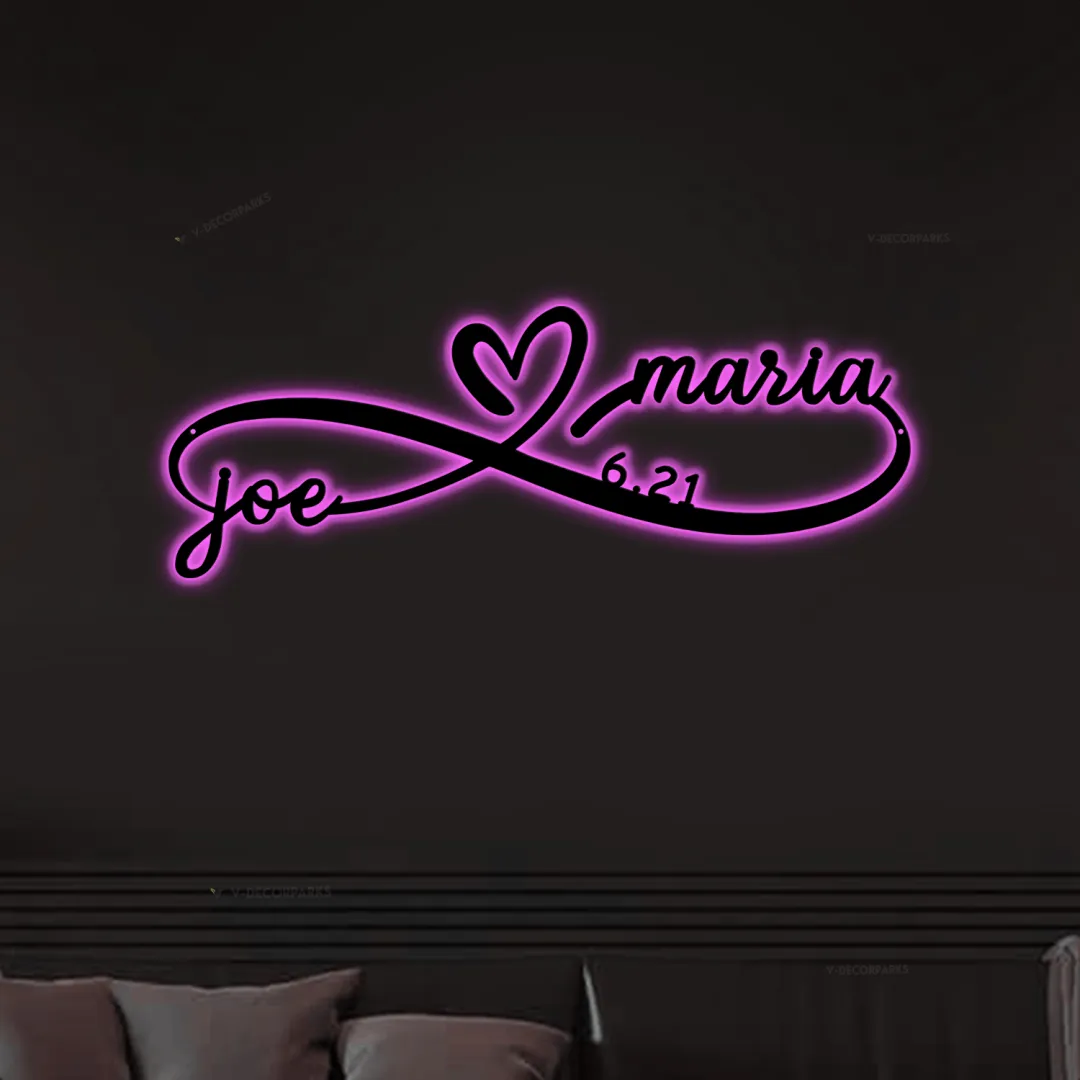 Infinity Metal Sign With Led Lights, Custom Infinity Sign Name, Infinity Sign Containing Names, Personalized Metal Infinity Sign