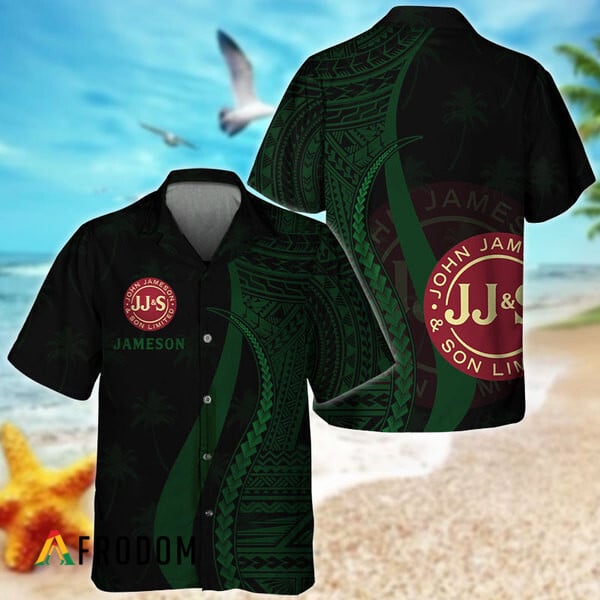 Jameson Whiskey Hawaiian Shirt For Men – Green Polynesian Pattern – Tribal Style Casual Outfit Gift For Dad