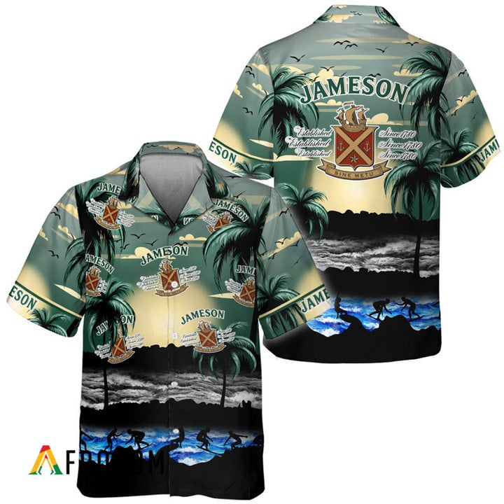 Jameson Whiskey Hawaiian Shirt For Men – Tropical Beach Palm Tree Surf – Summer Vacation Gift For Dad