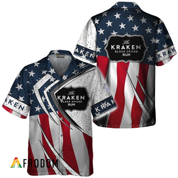 Kraken Rum Hawaiian Shirt For Men – American Flag 3d Design – Patriotic Summer Beach Vacation Outfit