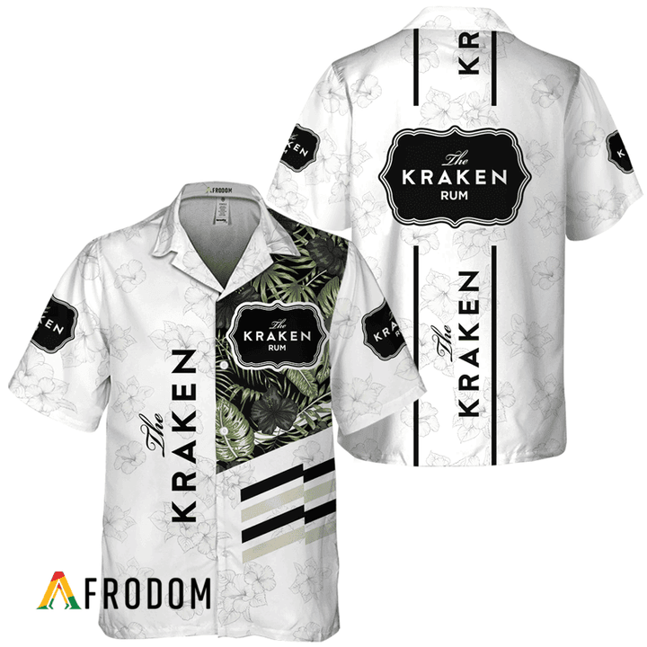 Kraken Rum Hawaiian Shirt For Men – White Tropical Flower Pattern – Casual Summer Beach Outfit