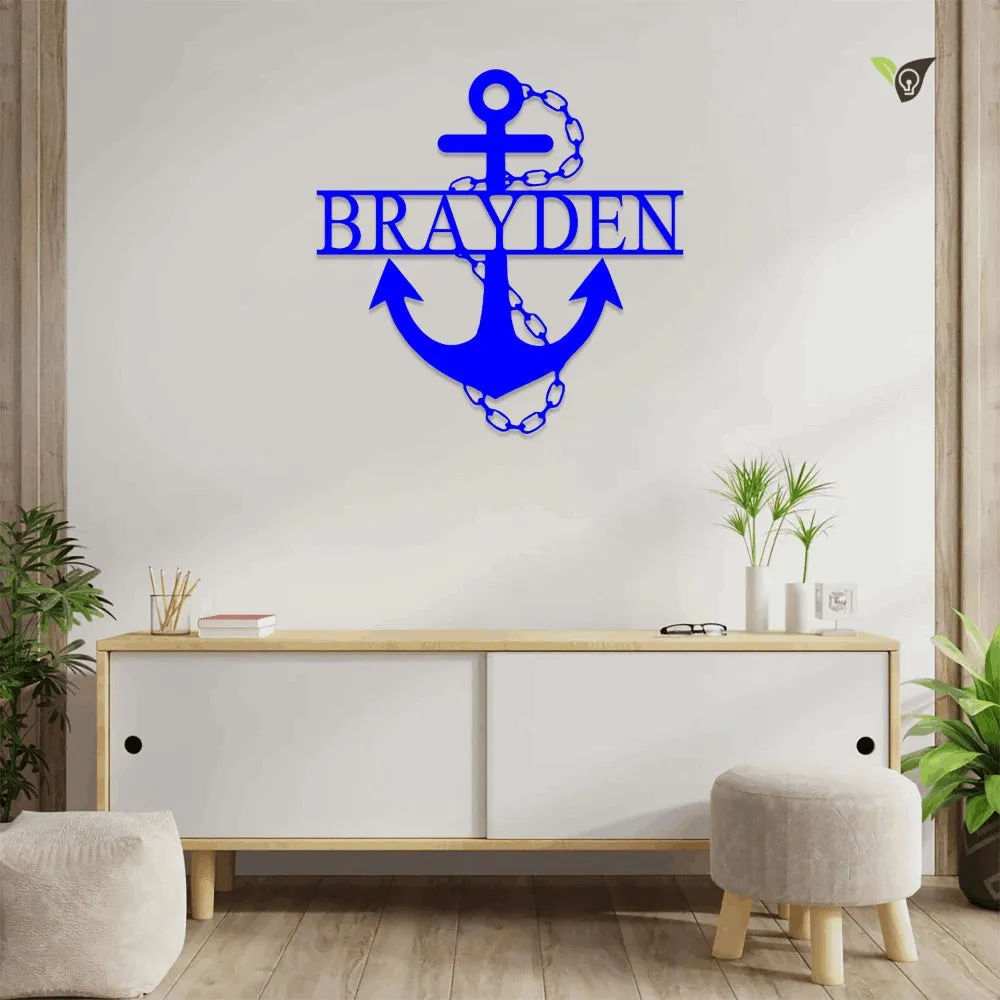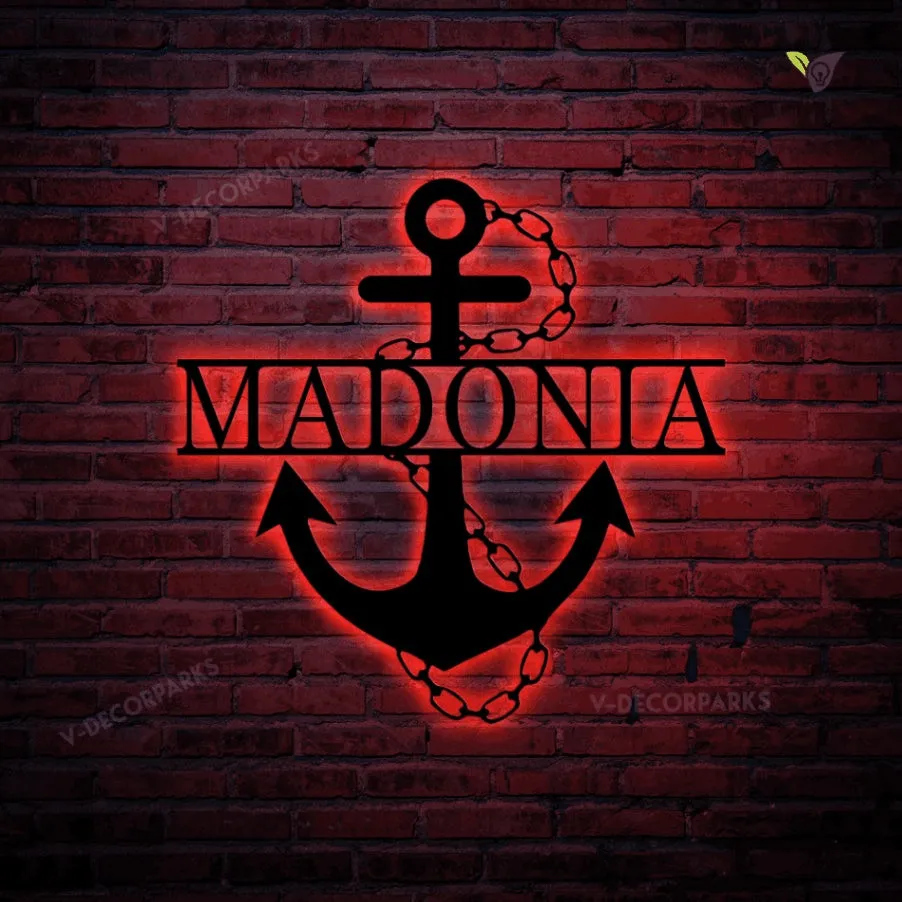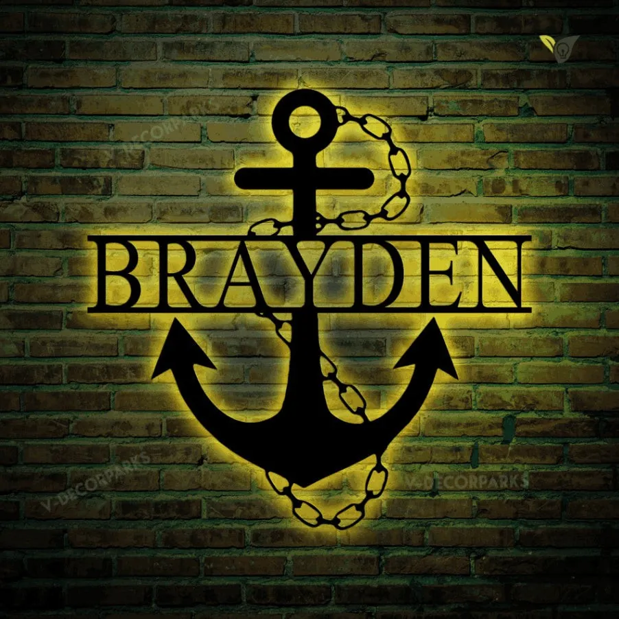 Laser Cut Anchor Monogram Metal Art With Led Lights, Contemporary Anchor Monogram Design, Anchor Wall Art, Family Monogram, Custom Anchor Sign