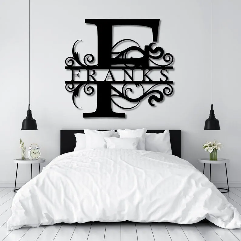 Last Name Metal Signs Personalized Metal Sign Custom Last Name Sign Family Name Sign Metal Wall Art Split Monogram Personalized Wedding Gift