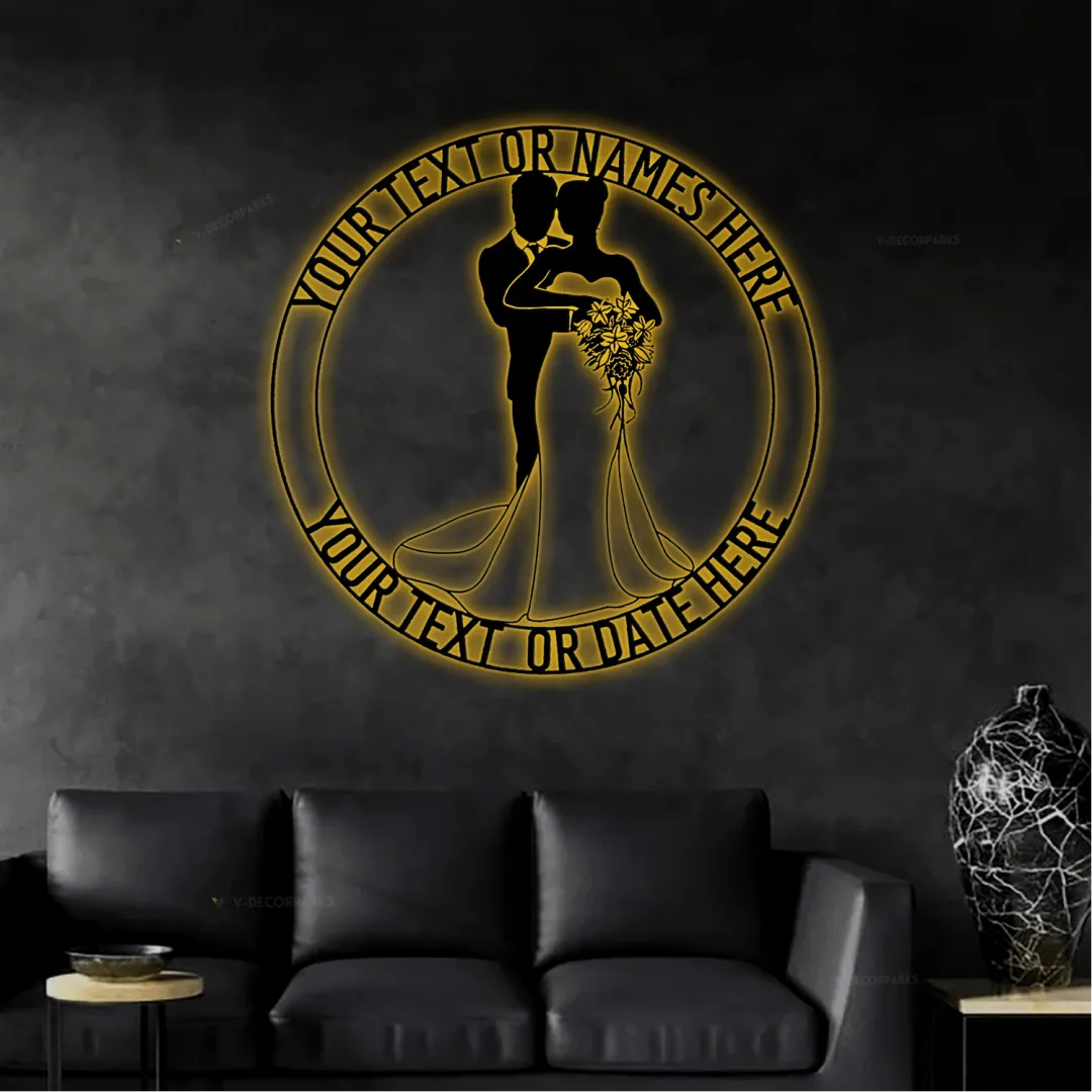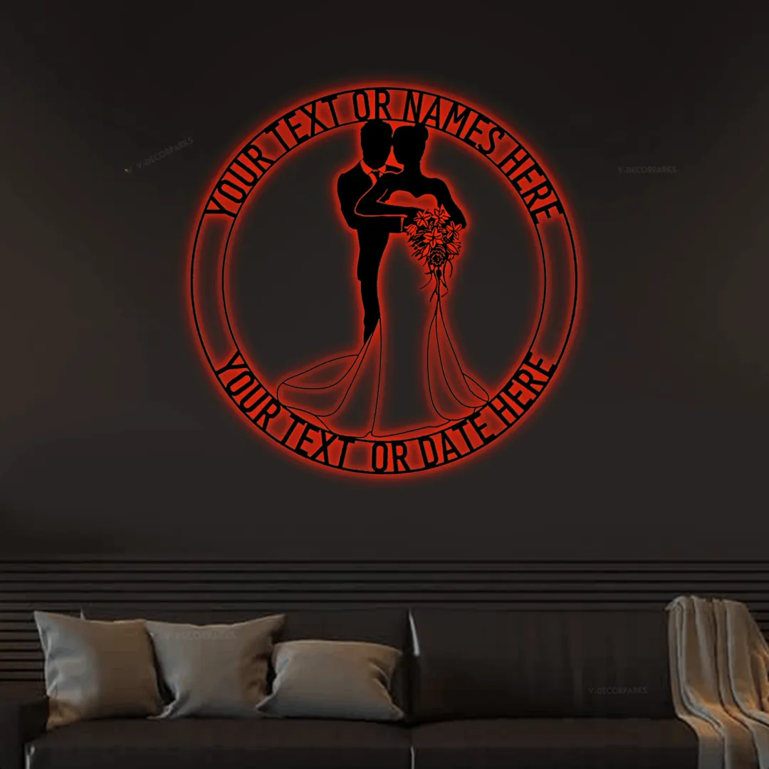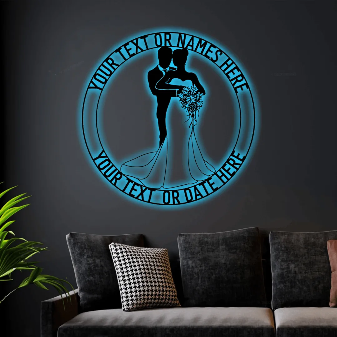 Led Lights Wedding Personalized New Married Couple Holding Each Other, Wedding Name Sign Gift, Custom New Married Name Sign