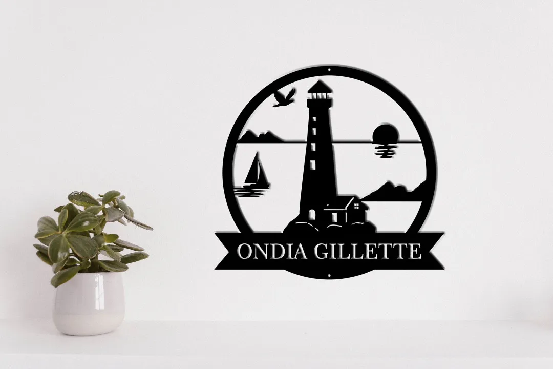 Lighthouse Metal Sign, Camp Decor, Nautical Decor, Personalized Lighthouse Sign, Lighthouse Decor, Custom Metal Art, Lighthouse Monogram