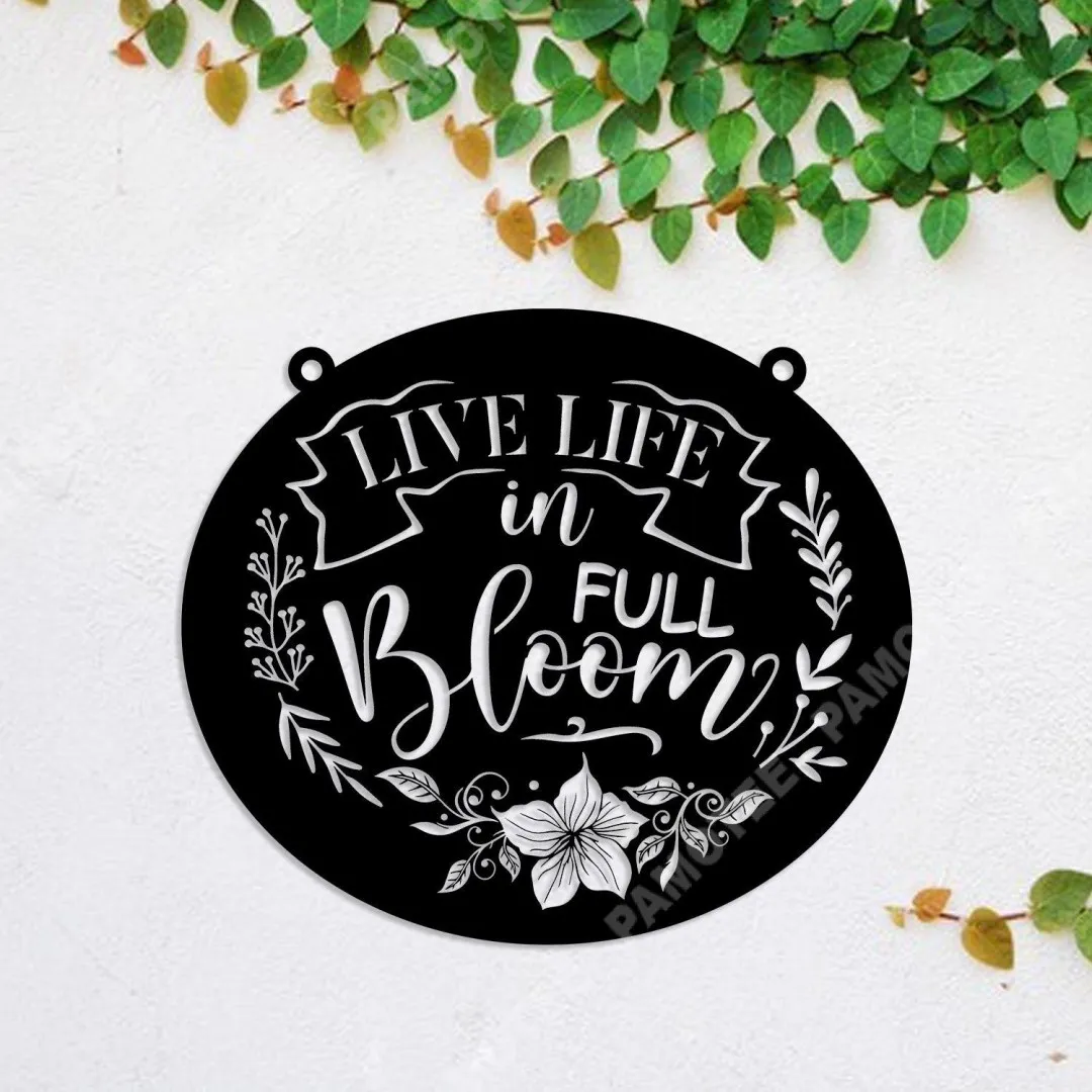 Live Life In Full Bloom Flowers Metal Garden Art, Wall Hanging Decor For Her