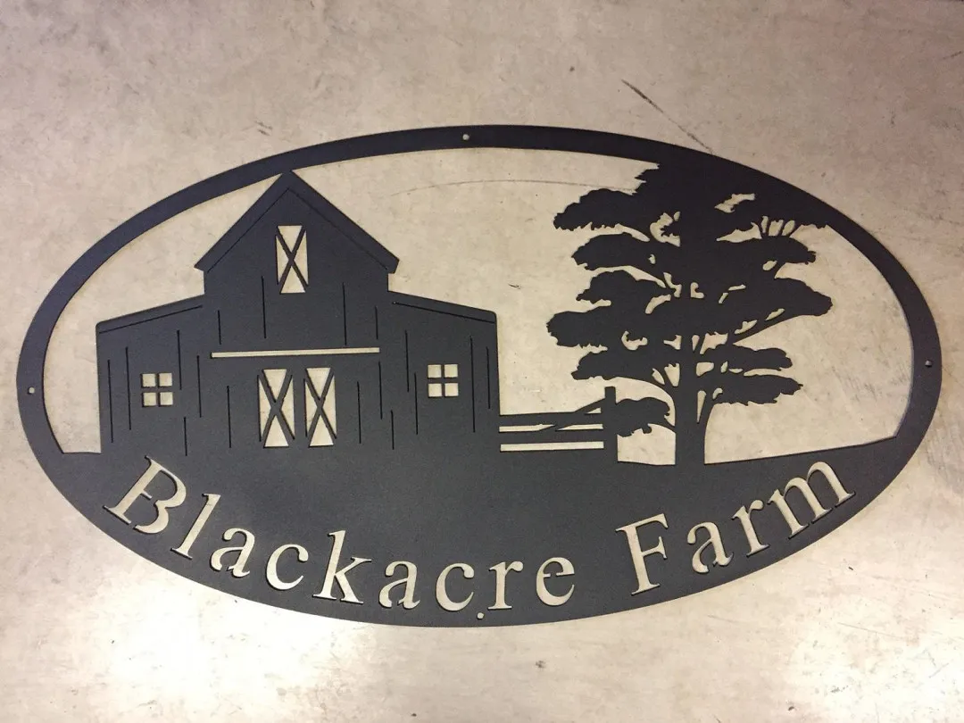 Metal Barn Sign With Barn And Oak Tree Customized With Your Name, Metal Wall Art, Metal House Sign