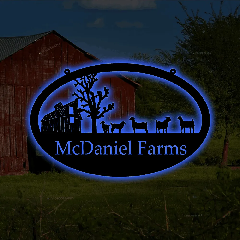Metal Farm Sign Goats With Led Lights – Personalized Family Name Metal Sign – Housewarming Gift – Wedding Gift – Personalized Gift – Metal Wall Art