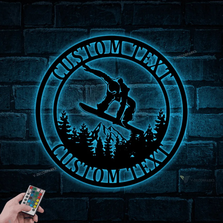 Metal Snowboarding Sign Led Lights, Snowboarding Sign, Extreme Games Sign, Cabin Sign, Ski Sign, Ski Lodge Sign, Skiing Sign, Snowboard, Mountain Sign