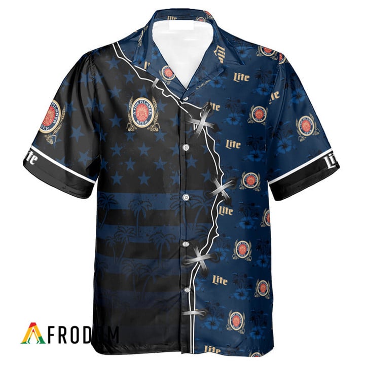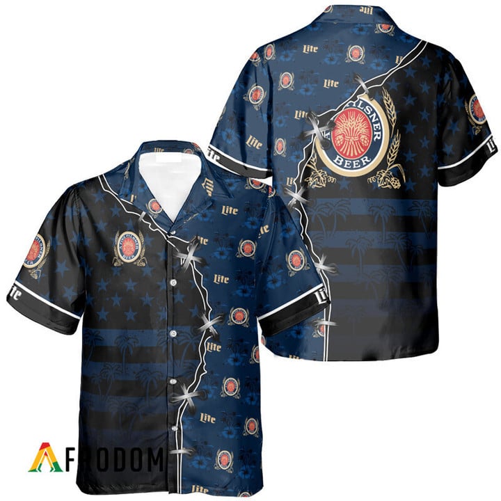 Miller Lite Beer Hawaiian Shirt For Men – American Flag Tropical Split 3d – Patriotic 4th Of July Outfit