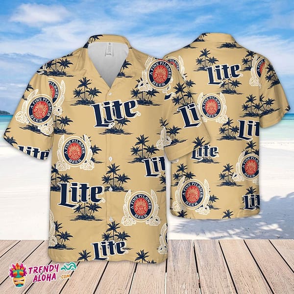 Miller Lite Hawaiian Shirt For Men – Coconut Tropical Island Design – Summer Beach Vacation Gift For Dad