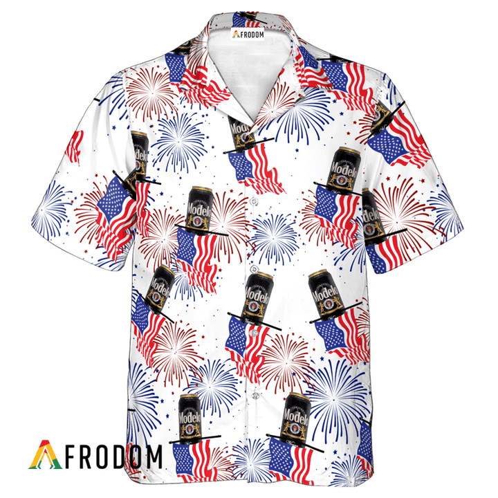 Modelo Negra Hawaiian Shirt For Men – American Flag Fireworks – Patriotic Independence Day Gift