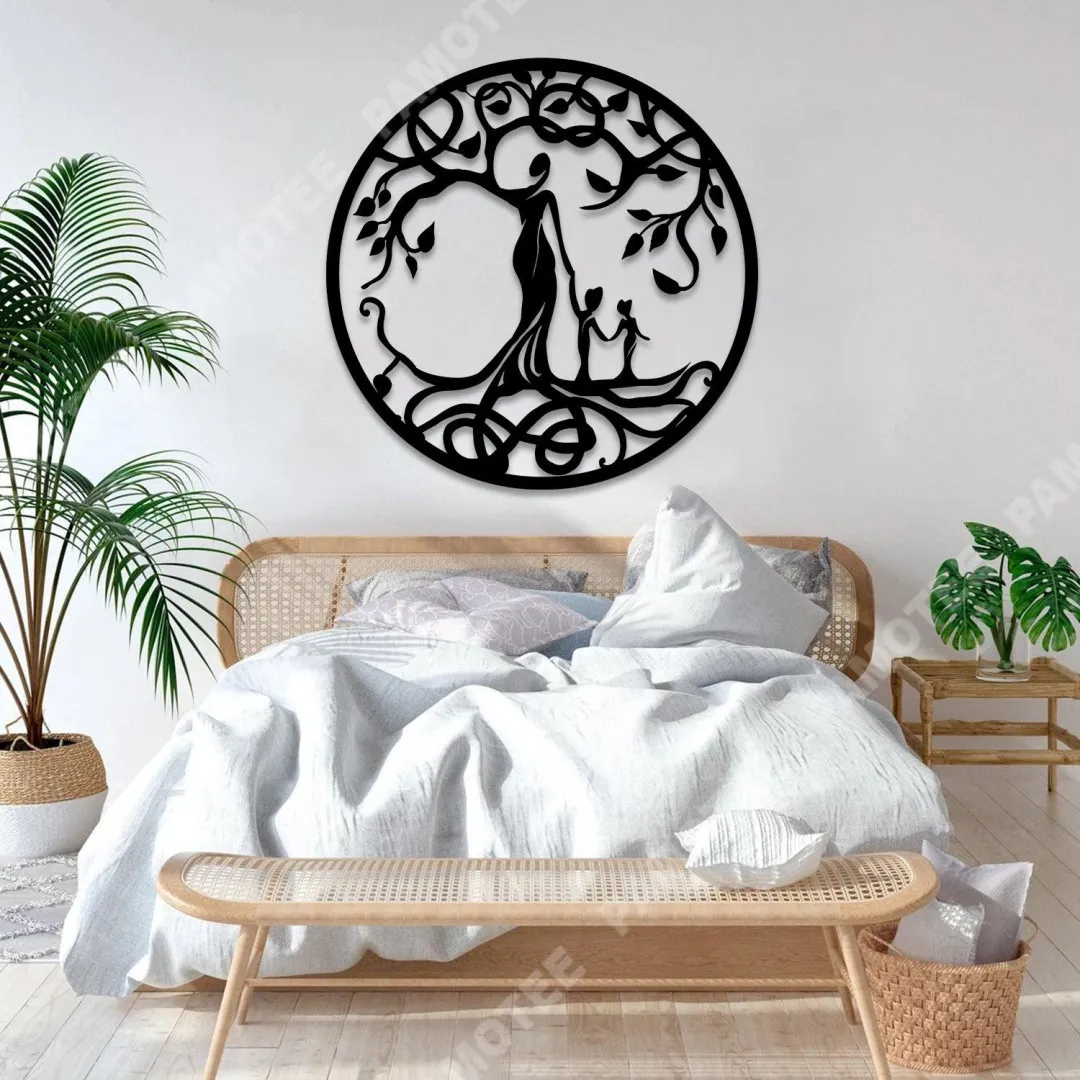 Mom And Two Kids Tree Of Life Metal Sign, Mother Nature Art