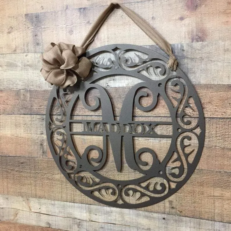 Mosaic Metal Monogram Door Hanger, Cut Metal Sign, Metal Wall Art, Metal House Sign